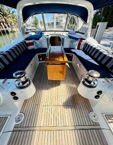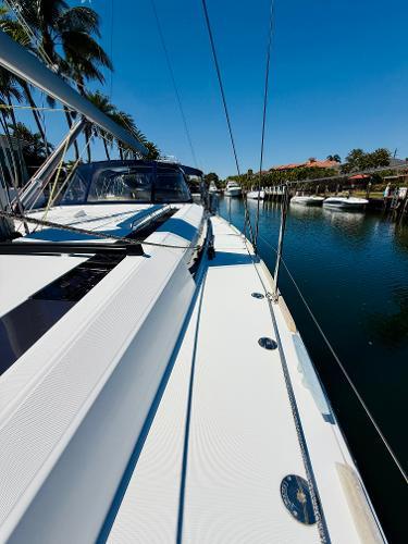 Freedom is by far the most well kept and appointed sailing vessel to hit the market!!! With 3 luxurious staterooms all with ensuite heads, Freedom is comfortable for both owners and her guests. With a beam over 16 feet, she has a very large salon and galley for entertaining or just relaxing. Freedom is completely set up for long-range cruising and with a shoal keel, she is the ideal sailboat for the Bahamas, Keys, and Caribbean. Freedom is owned by experienced sailors who sailed her from Southern California through the Panama Canal to Florida just last year. She has a 1000-pound rated arch that boasts 820 watts of solar and Lithium Iron Phosphate house batteries for plenty of power. The Yanmar 4JH80 engine with three 53-gallon fuel tanks has a 1000-mile motoring range at her cruise speed. Additionally, she has a Code 0 and 3A asymmetrical spinnakers and a staysail combined with her tri-radial laminate main and jib that allows Freedom to make tracks under sail. The 15-gallon per hour AC & DC powered watermaker fills both 60-gallon fresh water storage tanks so there is plenty of water for extended voyages.