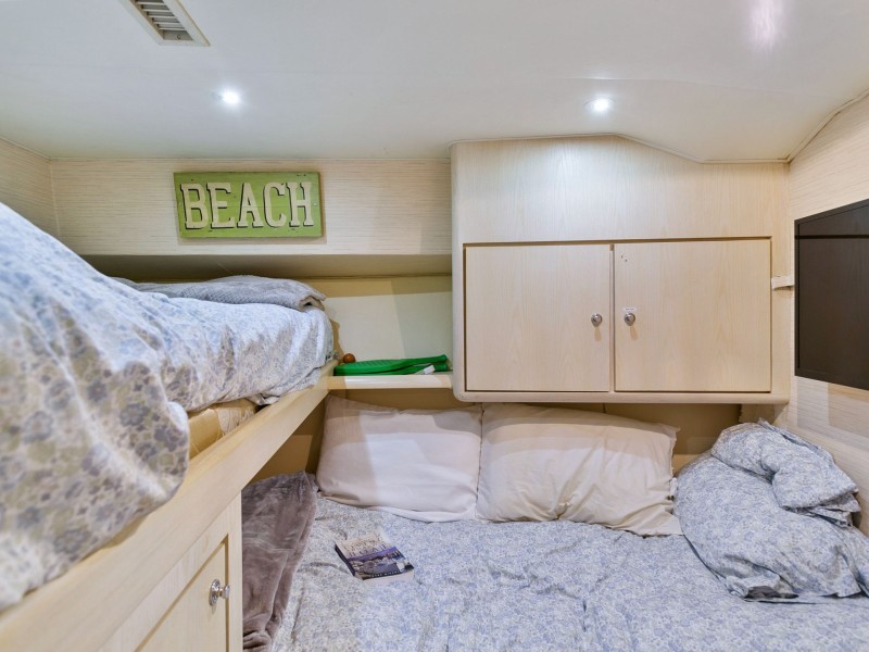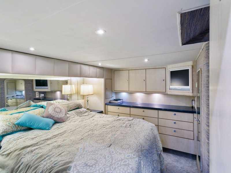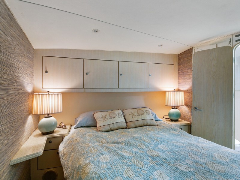 - Queen Size Berth With Mirrored And Padded Bulkhead With Two Drawers Under Nightstand