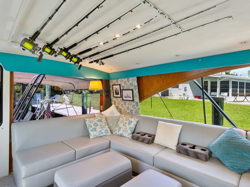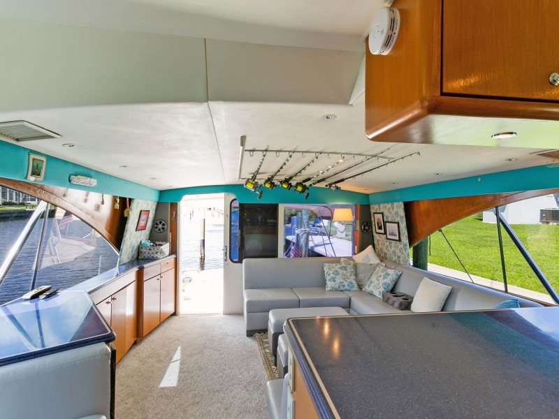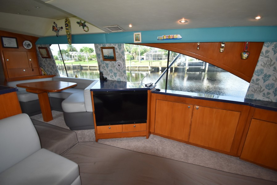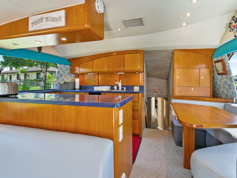 - Dinette Starboard Fwd With A custom Wood Table Curved Bench Seating Under Bench Storage