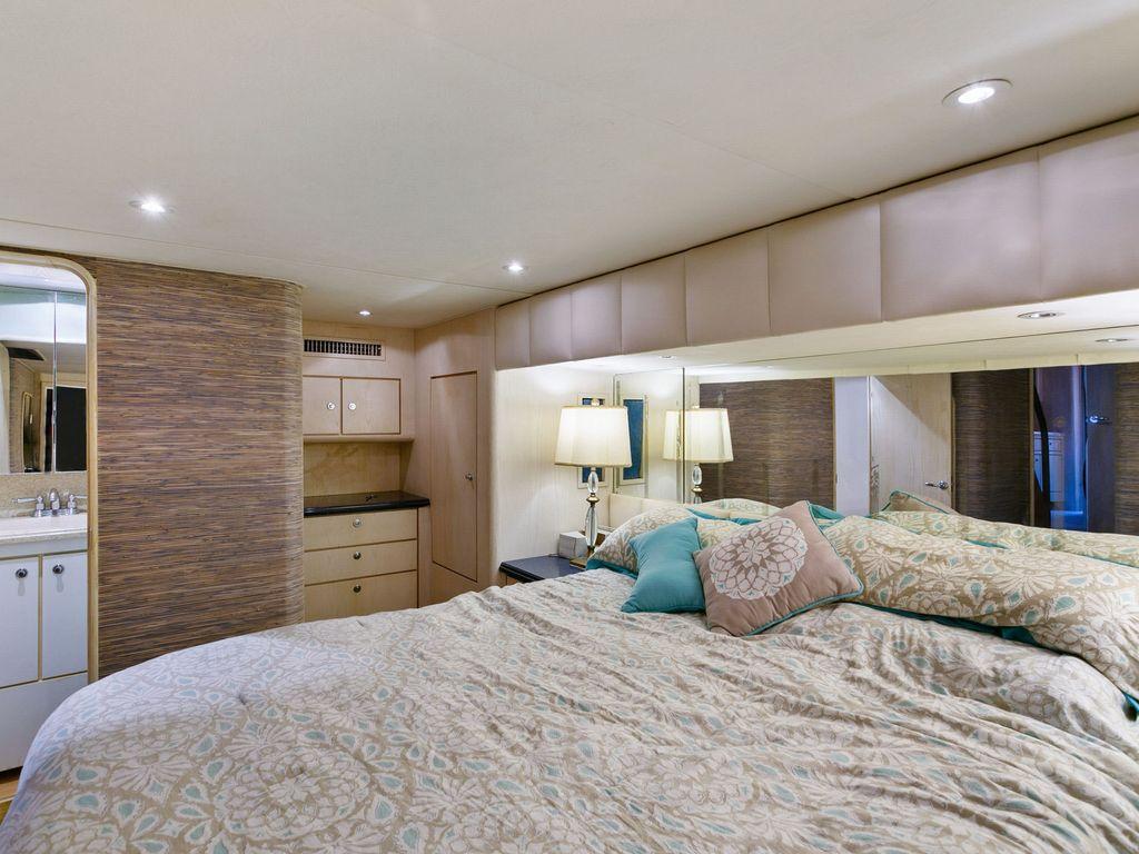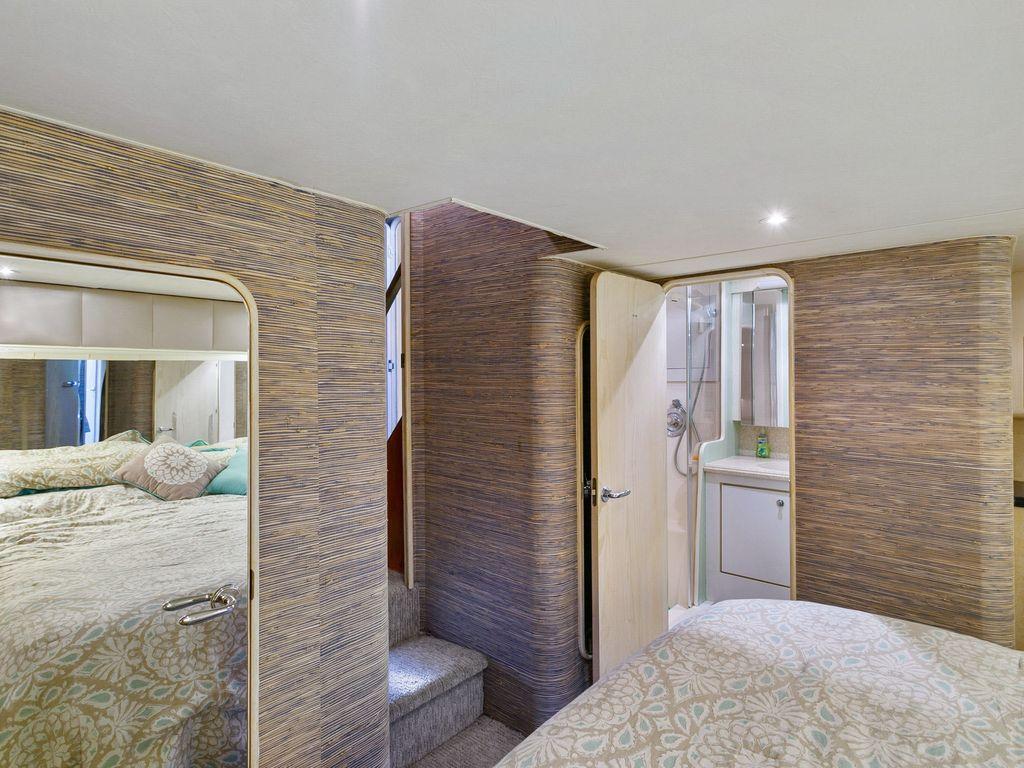 - Queen Size Berth With Mirrored And Padded Bulkhead With Two Drawers Under Nightstand