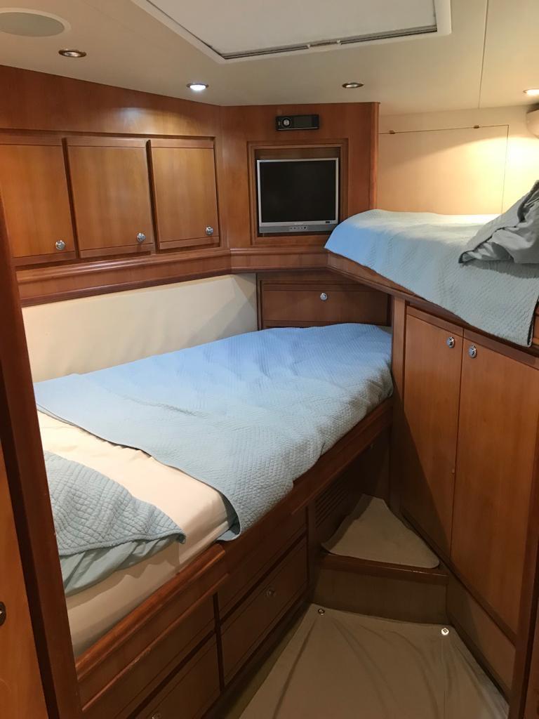 In the Bertram tradition of superior styling, performance and comfort, Bertram once again provides superior boating pleasure and superior long-term value. A cockpit measuring 147 sq.ft. makes the Bertram 570 battle ready, and is fitted with an oversized transom door with coaming gate in anticipation of your tournament class deep-water catch. A versatile bait & tackle center with sink, salt and fresh water faucets, cutting board, top loading freezer and circulating baitwell, all standard equipment, serve to enhance the pleasure of the sport. Offering standard and optional layouts throughout the interior, Bertram ensures that good living will be as inevitable as good fishing. A 16'11" beam affords a spacious and beautifully appointed entertainment area.