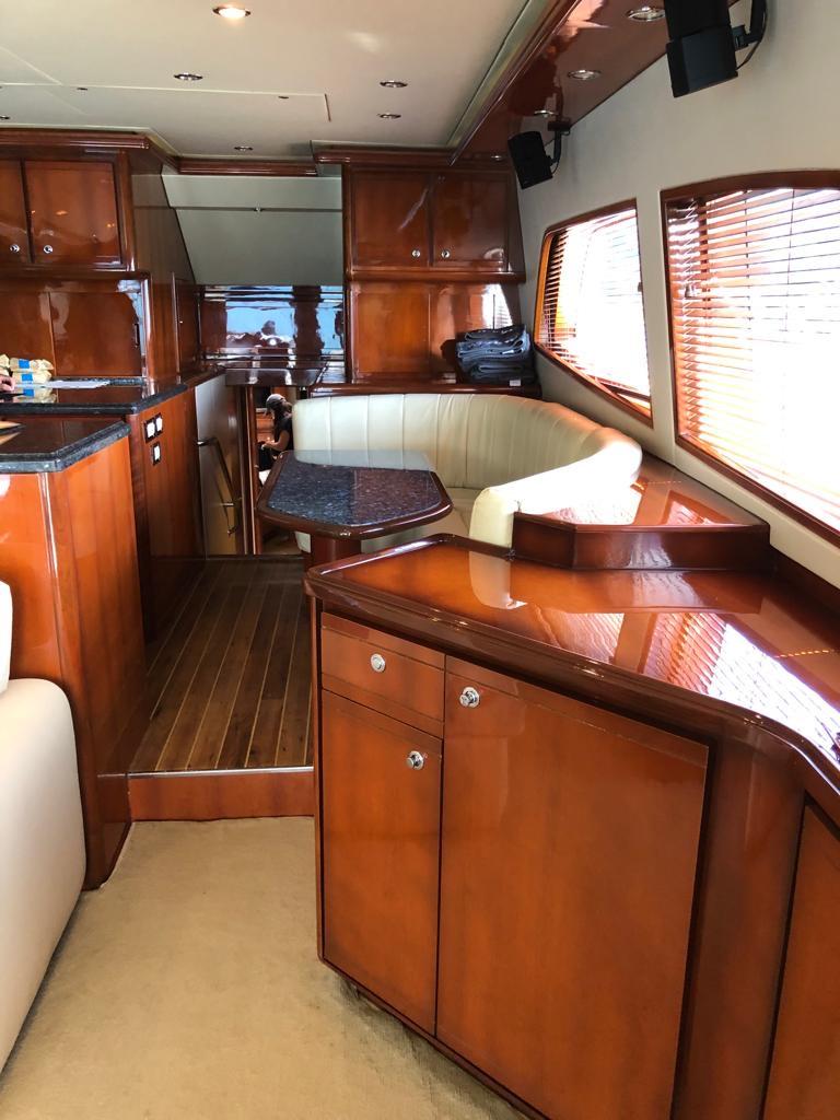 In the Bertram tradition of superior styling, performance and comfort, Bertram once again provides superior boating pleasure and superior long-term value. A cockpit measuring 147 sq.ft. makes the Bertram 570 battle ready, and is fitted with an oversized transom door with coaming gate in anticipation of your tournament class deep-water catch. A versatile bait & tackle center with sink, salt and fresh water faucets, cutting board, top loading freezer and circulating baitwell, all standard equipment, serve to enhance the pleasure of the sport. Offering standard and optional layouts throughout the interior, Bertram ensures that good living will be as inevitable as good fishing. A 16'11" beam affords a spacious and beautifully appointed entertainment area.