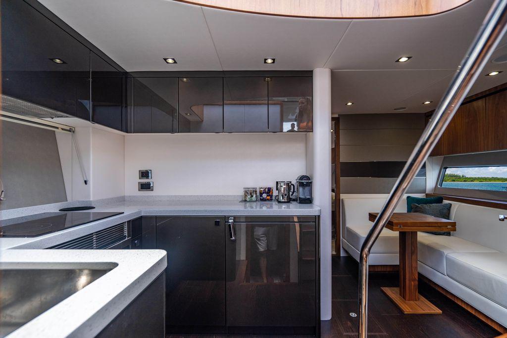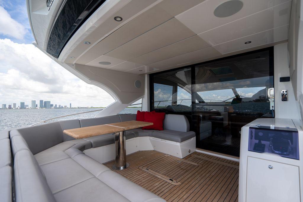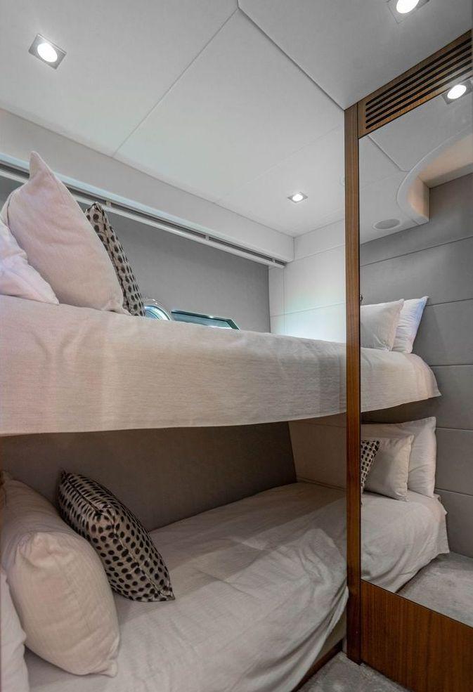 One of the most popular models to be produced by Sunseeker in the past decade, the Predator 57 is sporty, sleek and stunningly crafted to perfectly balance style with practicality. The saloon door sits on hydraulic rams and can be hidden completely in the deck to allow the full use of the large entertainment space seamlessly connecting the interior to the exterior of the vessel. The unique open plan and flexible design of the Predator 57 continues with a fully opening hardtop roof, also a moulded aft cockpit with a large L-shaped seating arrangement and wet bar. Fine and thoughtful design naturally continues to the exterior, with sleek yet oversized mullion-free hull windows to provide light-filled interiors. The Predator 57 cuts a sharp, impressive figure on the open water. Truly a yacht designed for perfect cruising.