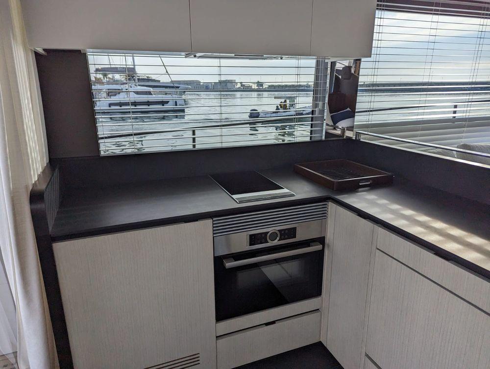 - Furniture on flybridge with barbecue, sink and fridge