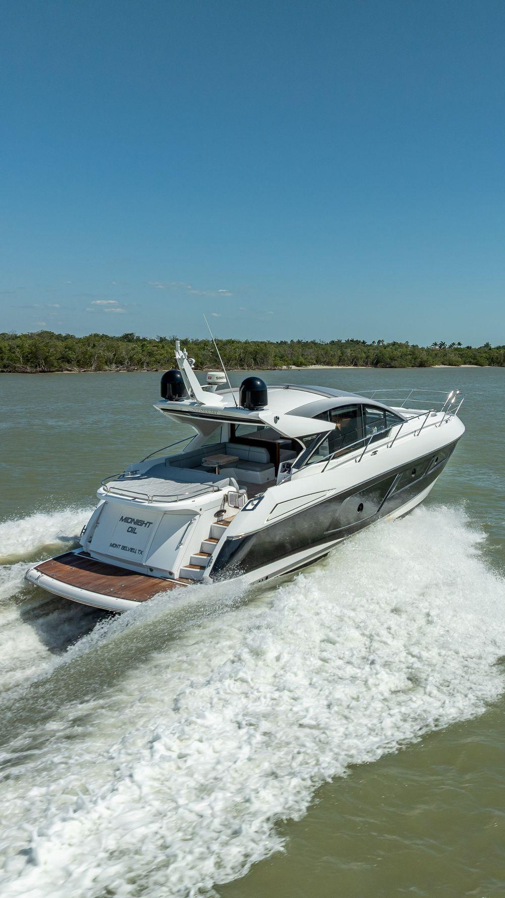From the sleek Custom Painted Hull Sides to the Black accents and modern exterior to the spacious, well-appointed interior, this Predator is the perfect combination of style and space, you will be able to explore the open ocean with ease, while the spacious cockpit and sun pad offer plenty of room for relaxation and entertainment. Inside, you'll find a beautifully appointed salon with comfortable seating and state-of-the-art entertainment systems, as well as a fully equipped galley and three luxurious staterooms plus crew quarters. MIDNIGHT OIL has been meticulously maintained by the owner. Call today to schedule a showing. Located in the Naples, Florida.