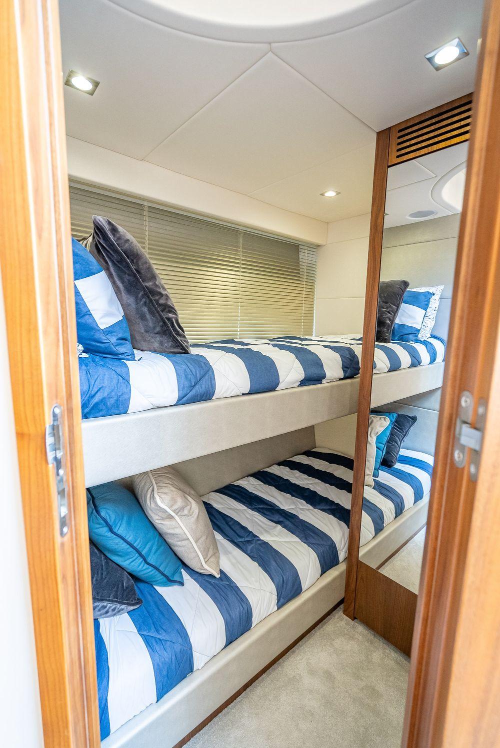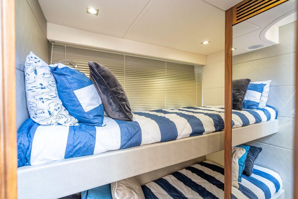 - Wood flooring throughout with carpet in the staterooms & custom Dcor with white leather inlays.