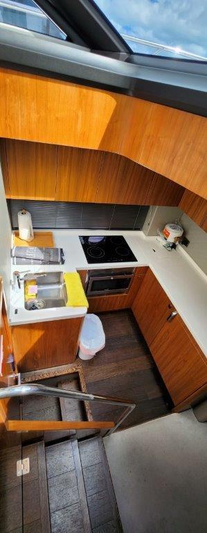 - Glass partition/sliding door separating cockpit & upper saloon drops completely to join the 2 areas using a "elevator"