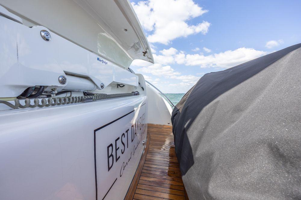 Owner operator dream! The best example of this model brought to market in years, especially now at show special price. Just completed full wax/polish/detail and teak refinishing (10/2024). This is the current owner’s third similar vessel and all systems must function flawlessly for trips to Exumas. All mechanical service provided by Caterpillar specialists Southshore Marine Diesel and maintenance program by Neptune Marine Detailing. Everything has received attention, including recent full service to engines and generator, full hull wax, full interior detail, carpet deep clean, new aft cockpit upholstery, new bimini top and teak refinishing. She features the more powerful upgraded Caterpillar C-15 engines with STRAIGHT SHAFTS (no pod drives or v-drives) that still keep the efficiency and maintenance accessibility of an inline-6 engine. The engine room looks like it just left the factory. Vessel boasts a huge lazarrete that many 80’ boats cannot match. Tunnel form hull provides shallow 4’2” draft that is rare for a vessel this size with a full-beam master included in total of 3 staterooms and 2 dry heads (no wet heads). The main salon has a living room and full bar area with storage, ice machine and refrigerator. The vessel also sports a hydraulic crane stowed in the transom with a large tender platform and custom chocks for the tender. The crane provides ease of maintenance, reliability and peace of mind you can always easily retrieve your tender without the added maintenance and reliability issues that plague swim platforms lifts. With a custom mounted high performance Starlink satellite, huge flybridge, multiple salon couches, large U-shaped dinette, cocktail bar, spacious kitchen, washing machine/dryer and tons of storage, she is the ideal shallow water cruiser for the Bahamas and Florida Keys. For comfortable high performance long range cruising combined true customer and parts support of Princess Yachts of America, Princess is still the standard. “Best Day Ever” has been a loved boat with a long list of resent and past upgrades along with all service being current, she is turn-key and ready for the next Exumas adventure. See maintenance below in date order.