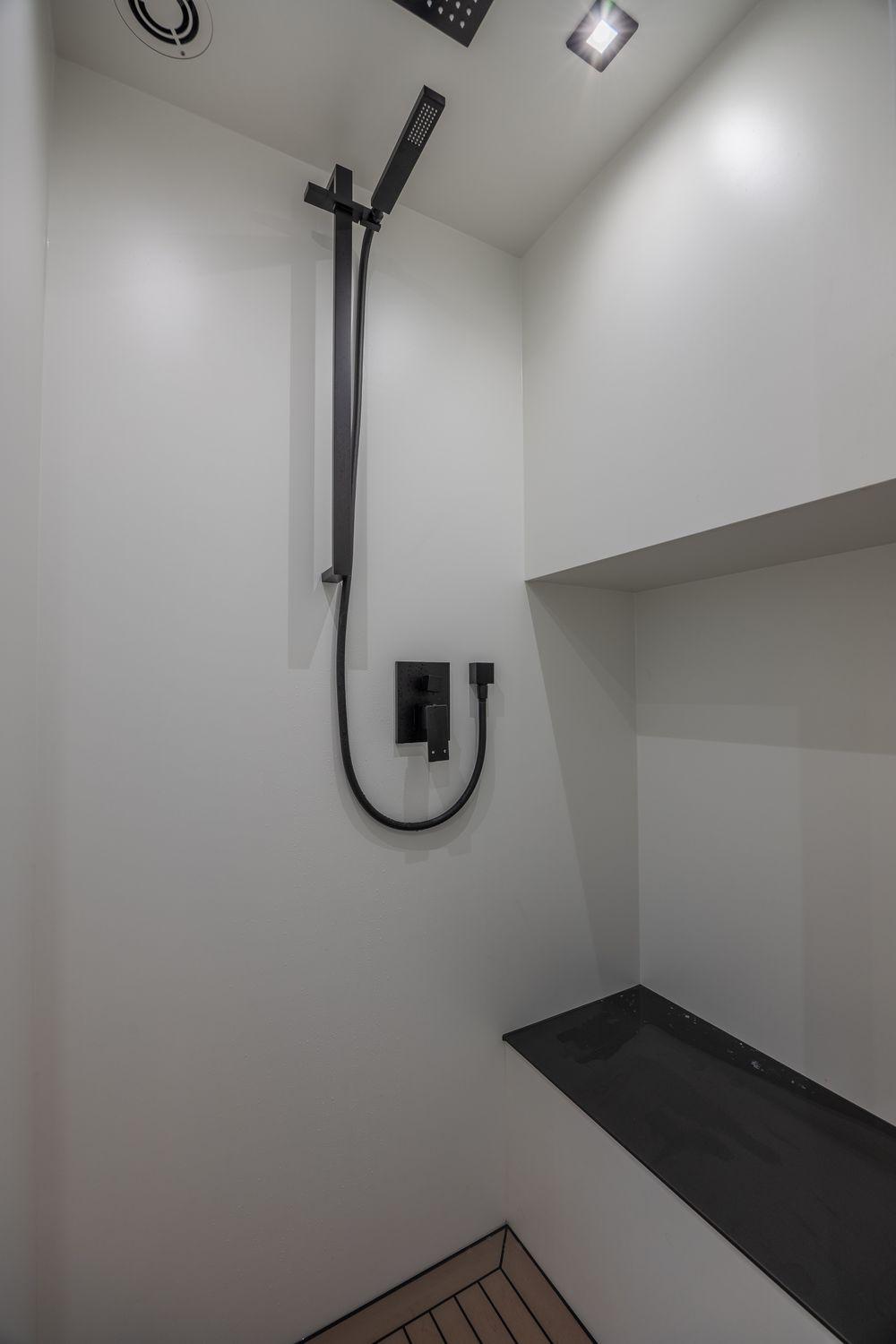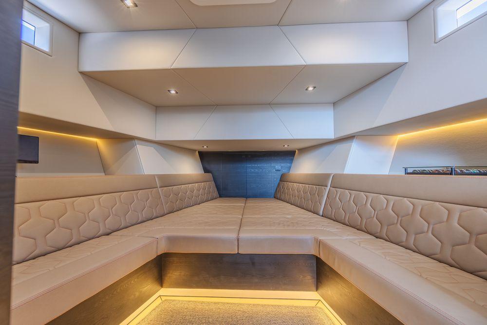 This fully loaded VQ58 features a sleek Lamborghini Silver aluminum hull w/ red soft goods, IPS drives for agile handling, and Sea keeper gyro stabilization for comfortable cruising. The expansive tender garage holds a custom VQ11 tender and two matching Seabobs.