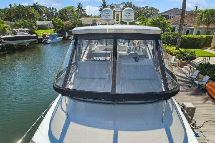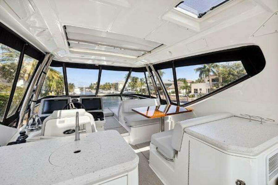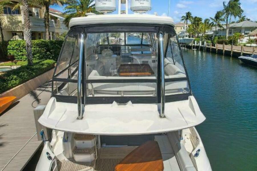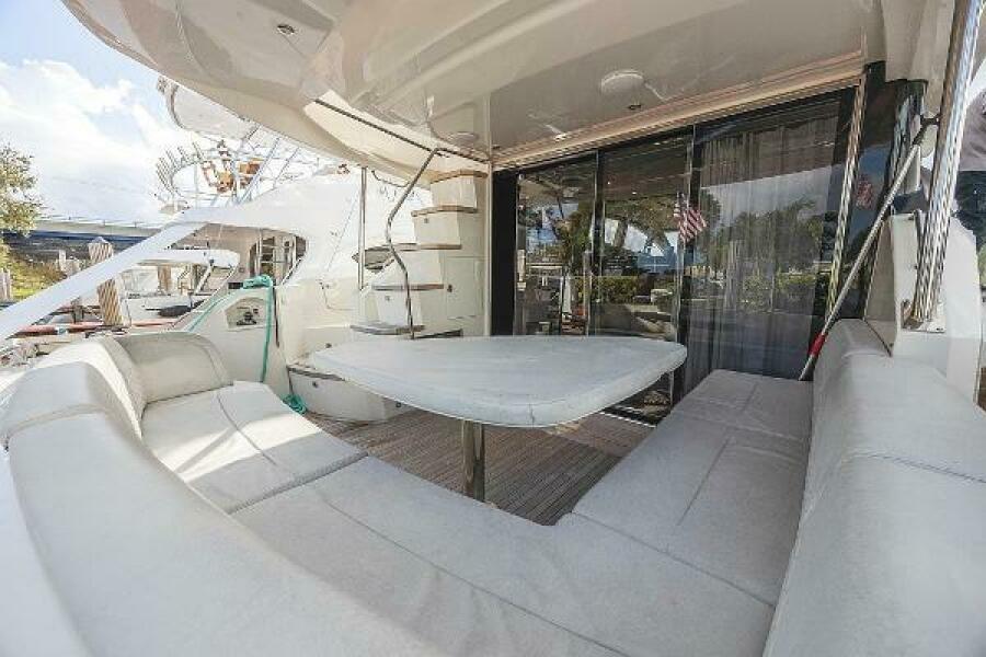 This yacht features an extended hydraulic swim platform, perfect for launching water toys or providing easy water access. Ample lounging areas at the bow and cockpit make it ideal for sunbathing, socializing, al fresco dining or enjoying the sea breeze.