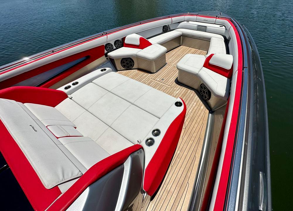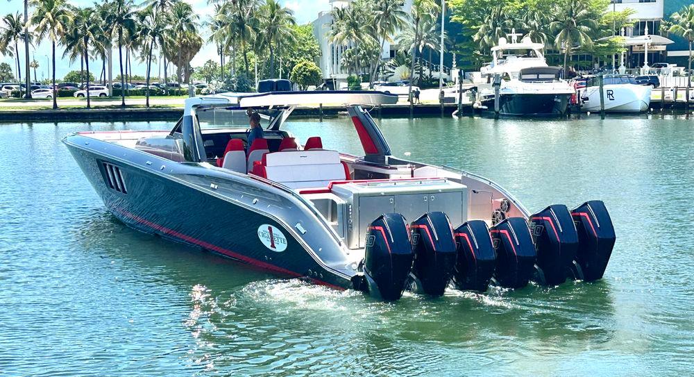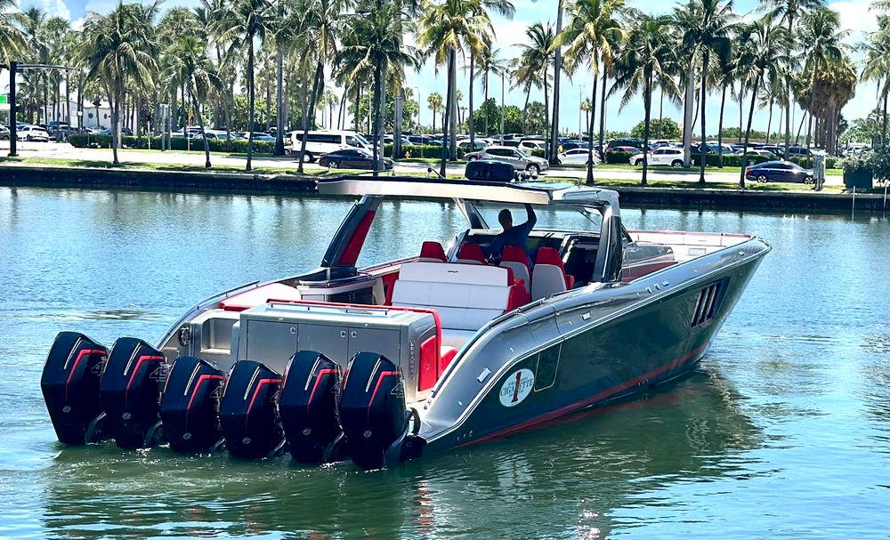 New to the market is a beautiful 59 Cigarette Tirranna repowered with (6) 450 H.P. Mercury Racing Engines with only 80 hours (Installed 6/2023) and full warranty. This is Cigarette's flagship boat with its racing background and luxurious interior and incredible attention to detail she will not disappoint. Just to highlight a few of the options on this absolutely loaded boat she is equipped with a Seakeaper 6, diesel generator, bow and stern thrusters, monster JL Audio sound system, real teak decks throughout. If you are looking for the absolute best in offshore performance and luxury then this is it.