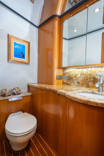 AccommodationsTake Em was designed and built for owners who value simplicity and ease of maintenance without compromising elegance. The teak cabinetry is a perfect example of this. The galley island and bar stools are designed for the casual life of the sportfish enthusiast.