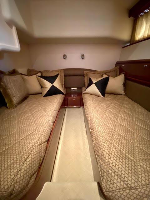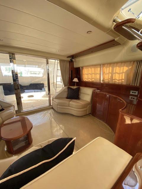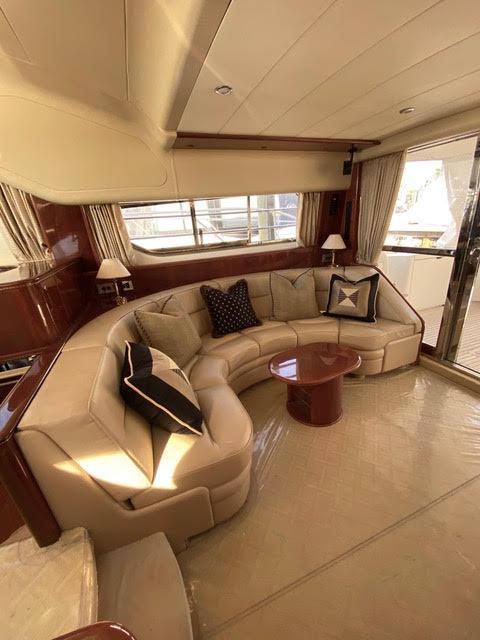 - Salon is aft w/Lounge Seating & Table to Starboard