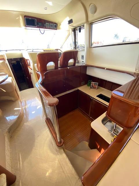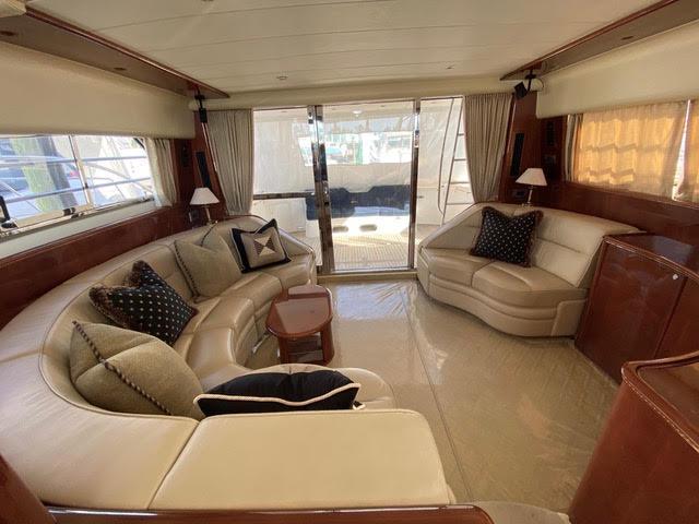 - Salon is aft w/Lounge Seating & Table to Starboard