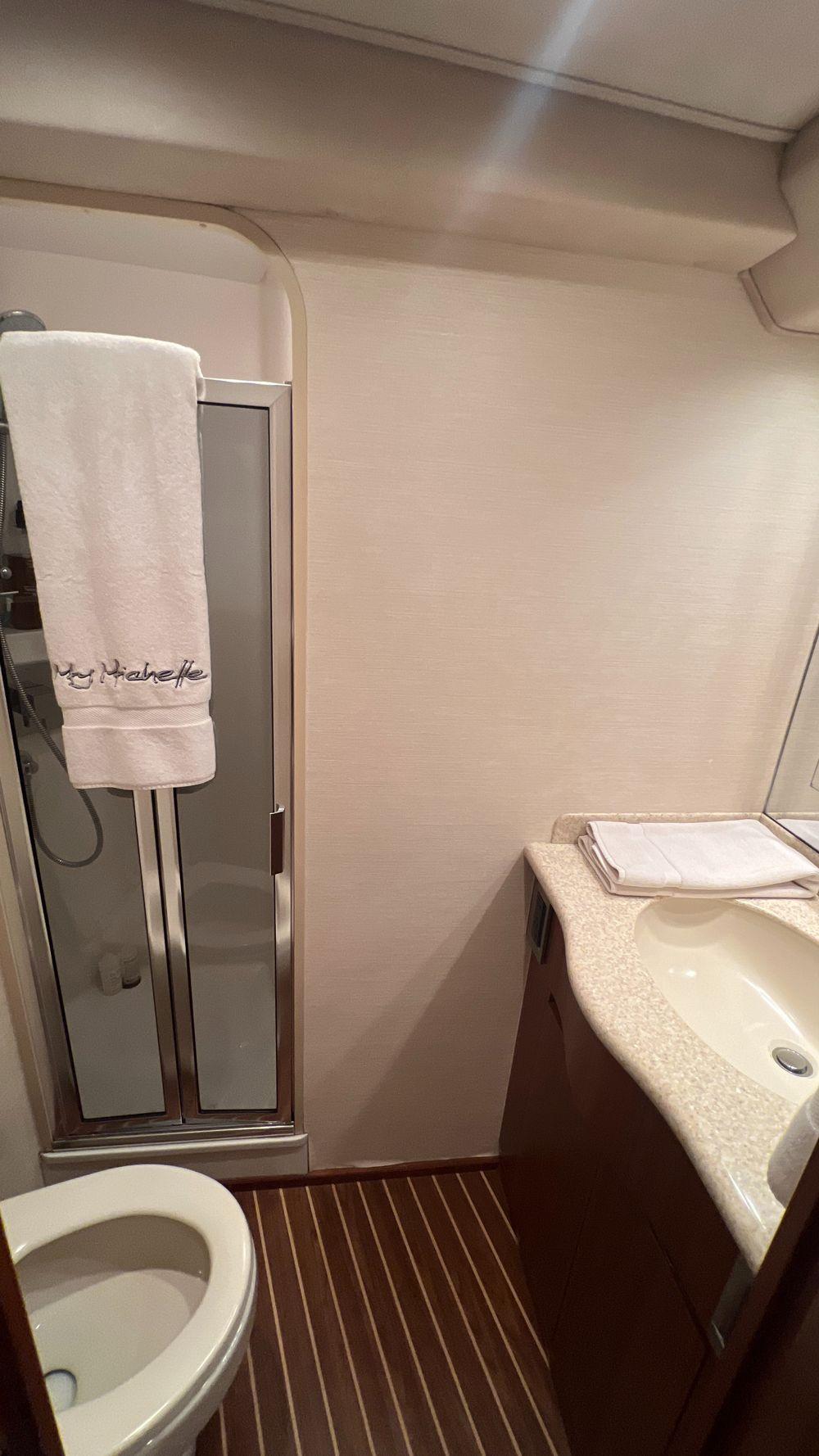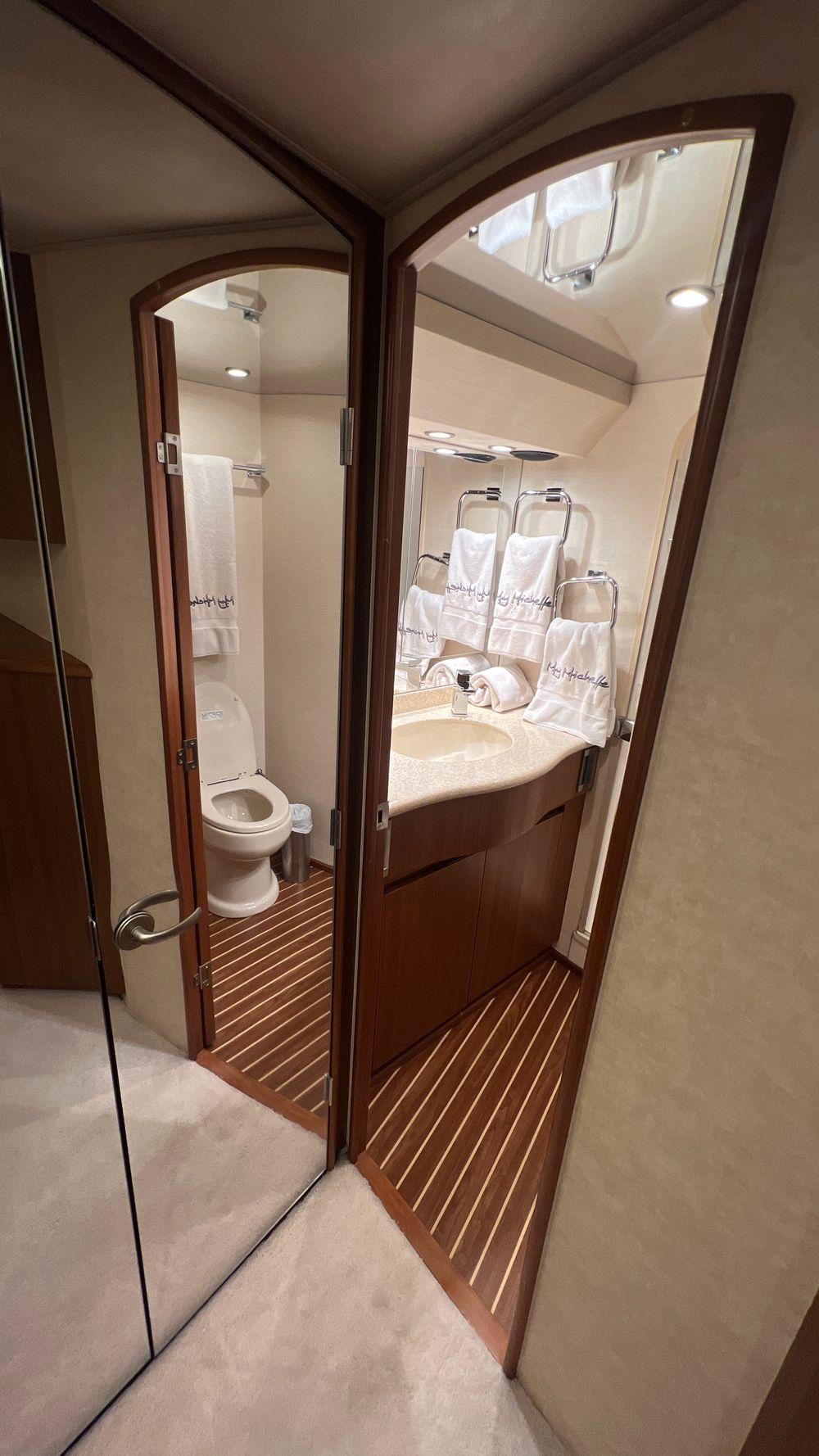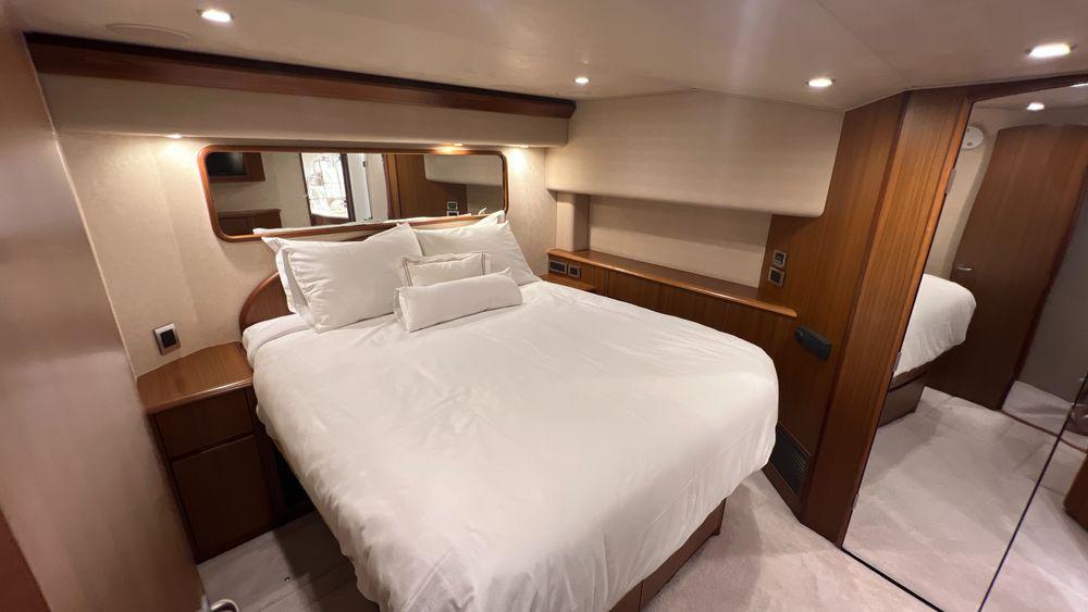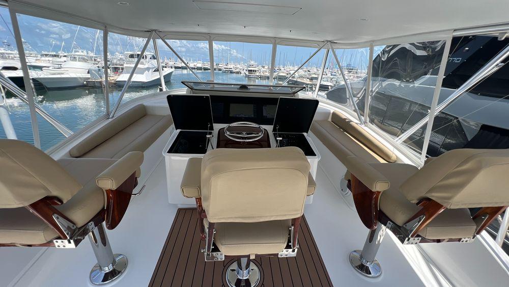 Custom stone galley countertops with high glass teek interior. Another custom feature is the custom Palm Beach Tower, with upgrade Garmin electronics package. Recent hall side paint with a stunning “Haze Grey” color. If you are looking for a 60’ Class 4 stateroom convertible that is captain maintained, with many custom upgrades then you should definitely take a look at “My Michelle”