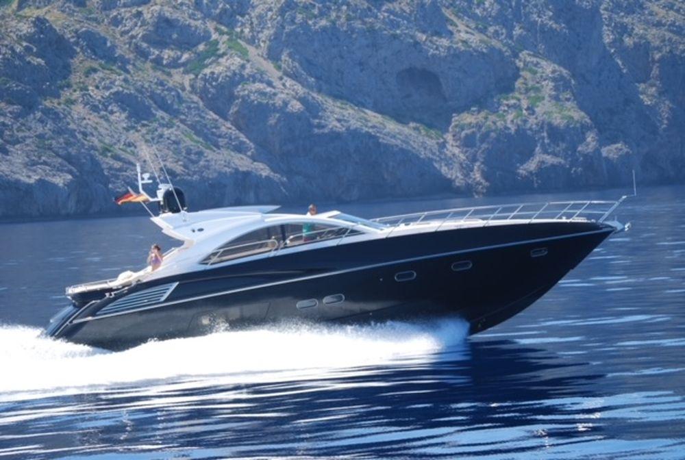 This 40-knot speedster is as much about performance as it is about comfort. A high performance hull belies the space onboard, where accommodation is optimised. Both open and hard top versions are available. And as well as a choice of engines, theres also an option in drive systems. The more compact pod drive saves engine room space enabling an enlarged master suite. Luxury is extended throughout with a large main deck area providing ample space for dining and entertaining. Large sunpads are positioned fore and aft and the garage provides ample storage for tender or jet ski. Down below the saloon and three guest cabins all offer a typically high level of comfort and feature their own entertainment systems.