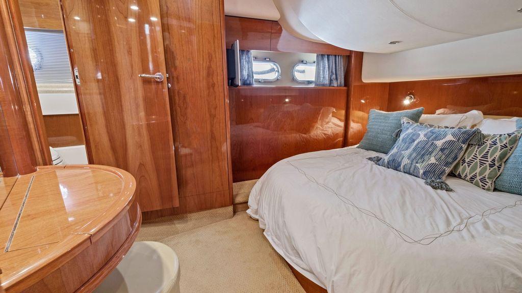 The forward VIP stateroom could also be considered a master stateroom and it's features are virtually the same as the starboard master, less the make-up table/ stool.