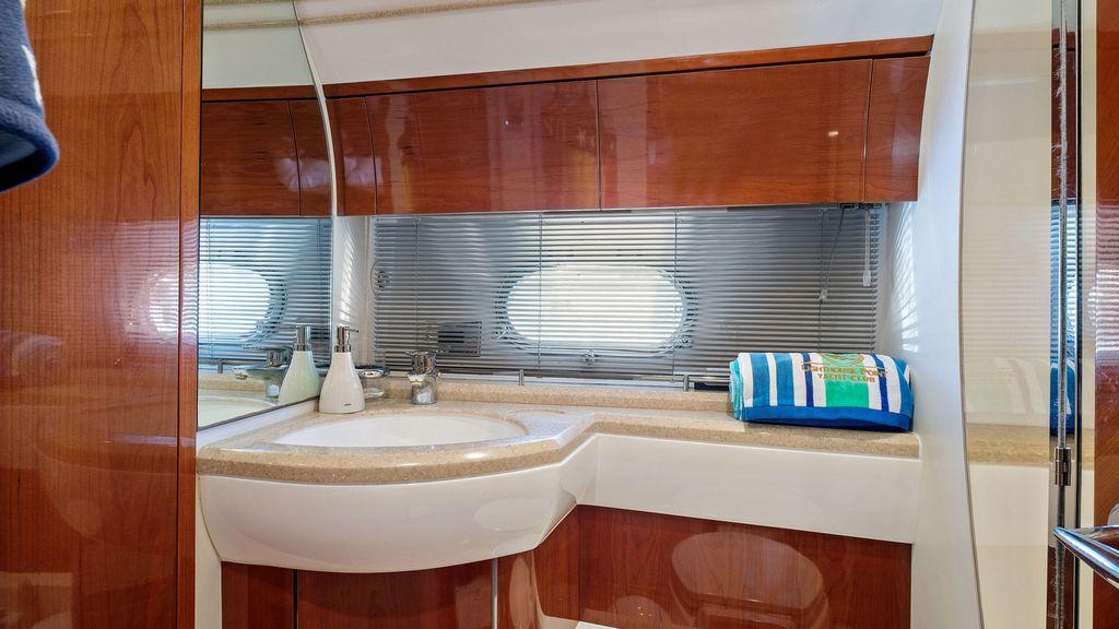 The forward VIP stateroom could also be considered a master stateroom and it's features are virtually the same as the starboard master, less the make-up table/ stool.