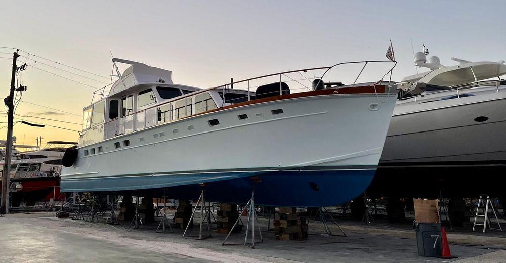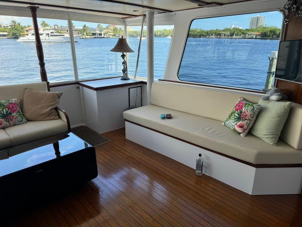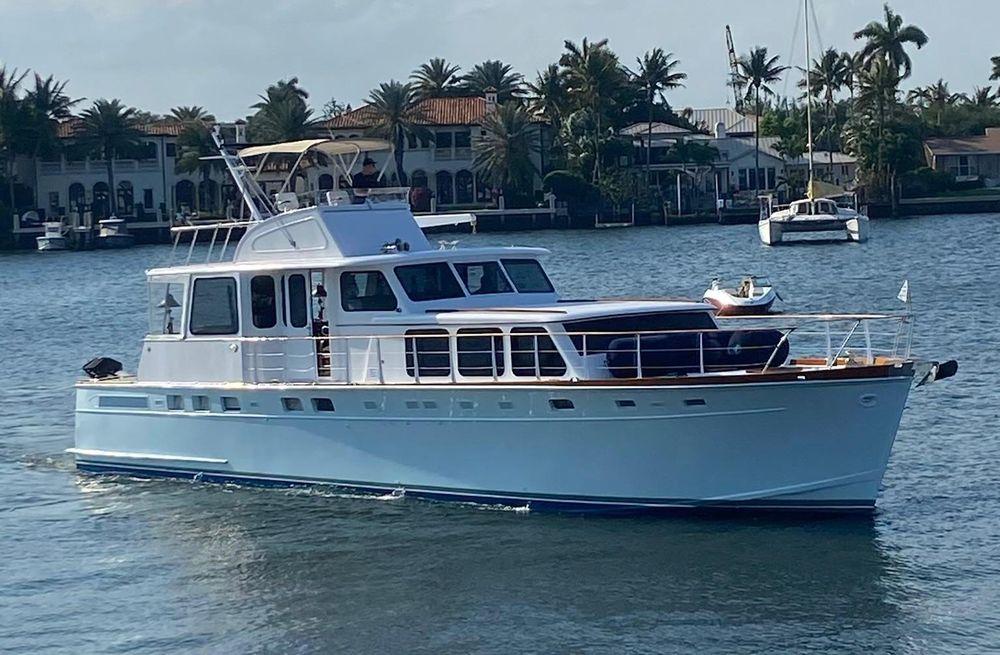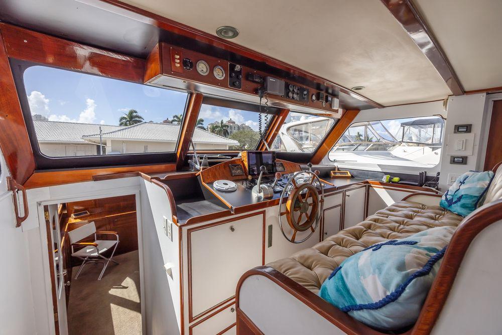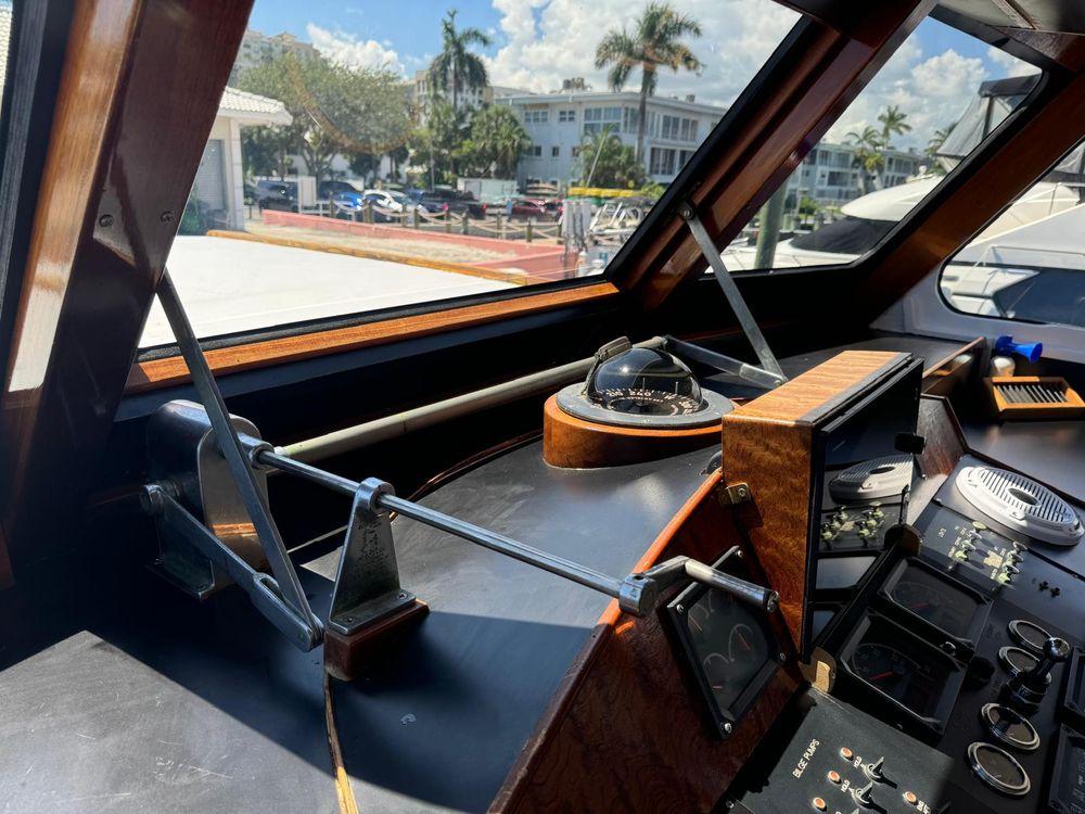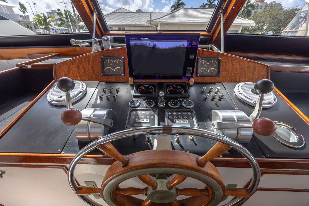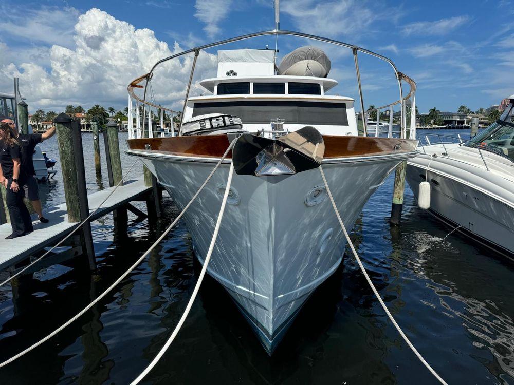 BREAKAWAY has benefited from knowledgeable owners who truly appreciated her wonderful attributes as a fine world class cruising motor yacht. Between 1996 and 1999, BREAKAWAY underwent an extensive restoration project at the legendary Huckins shipyard in Jacksonville Fl. During this time, she was repowered with 600 Hp CATS 3176B. Improvements on the lower helm and bridge deck were also a part of this restoration at Huckins. In 2001 she was sent to a Hinckley shipyard for a new galley. 2017 was a great year for a superb gleaming AwlGrip paint job. Between 2020 and today she has received both mechanical and cosmetic upgrades including new Awlgrip topsides (2022), underwater lights, new water tanks, new wiring, new Air Conditioning, new fore deck, etc. As a custom live aboard powerful cruising machine, BREAKAWAY has provided her current family incredible cruising and living aboard memories that will last for generations. Her easy access to the water and a large cockpit area allows her to participate in a variety of water sports. But the time has come for a change in lifestyle. BREAKAWAY never fails to raise heart rates and to cause downright awe and envy whenever she glides by. Perfectly at home on the hook in the islands or having the weekend BBQ at the sand bar, she is ready to go and provide another family with more adventure and stories to tell. Easy to preview in Fort Lauderdale the yachting capital of the world. Courtesy showings and video walk throughs are available.