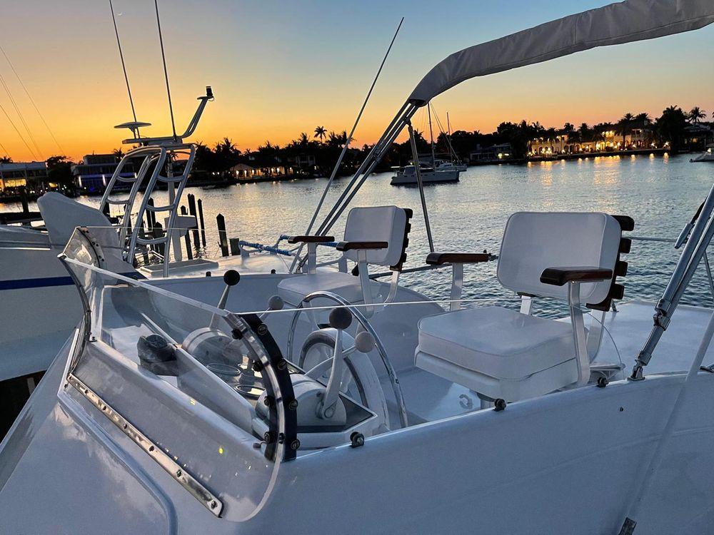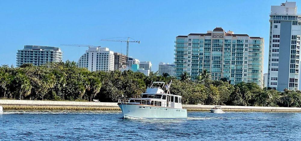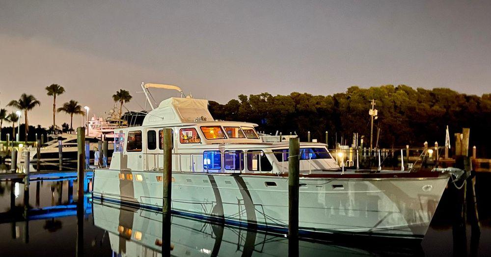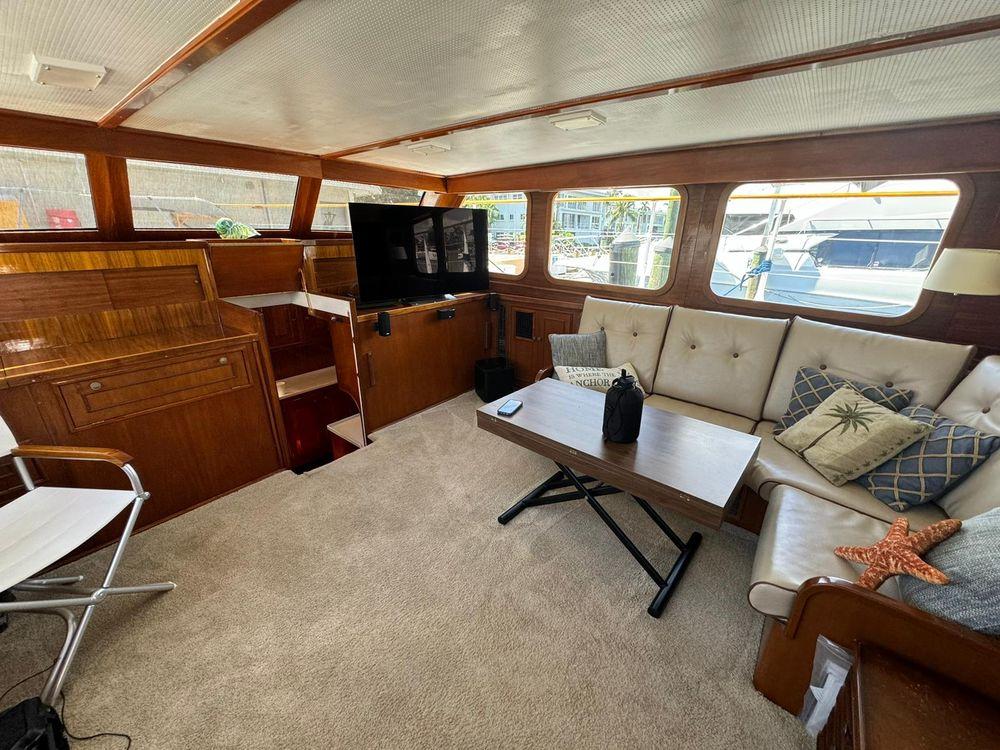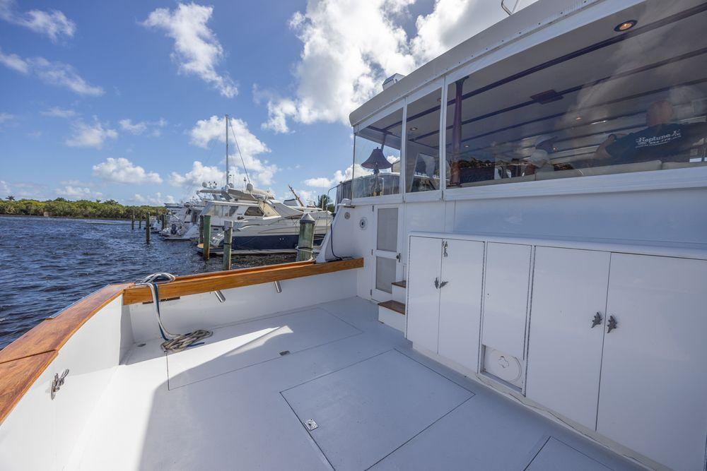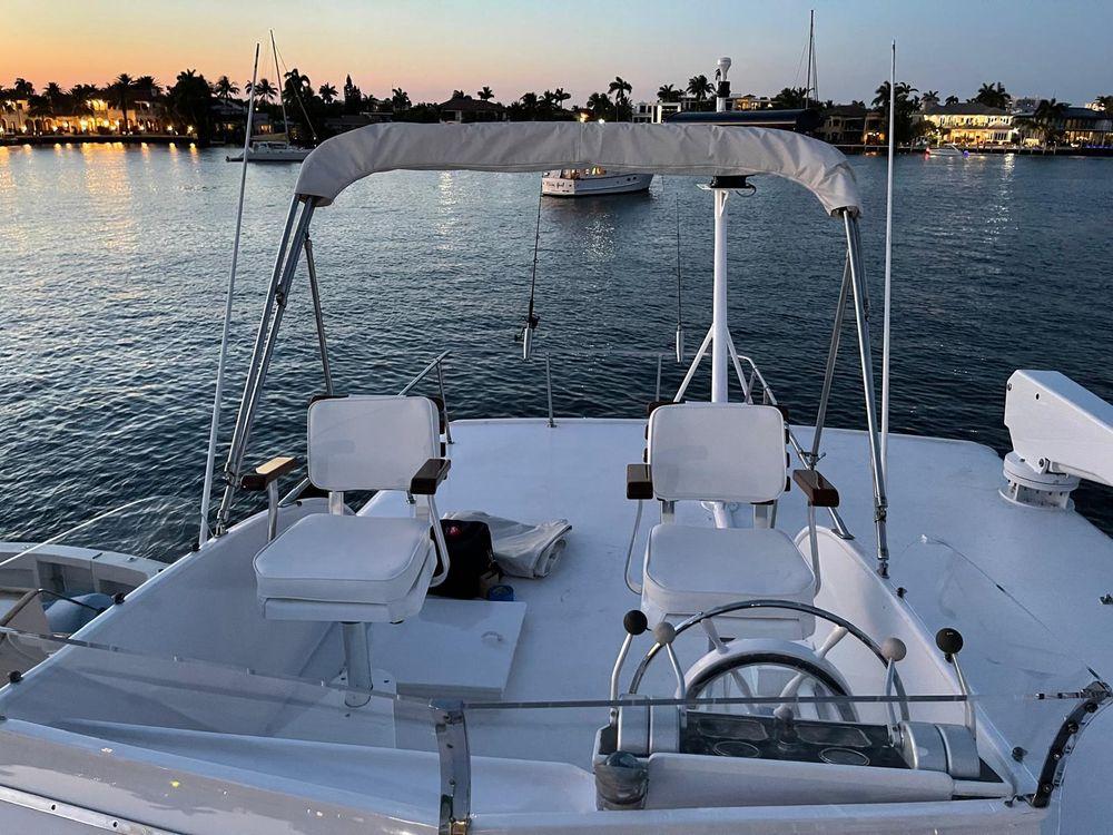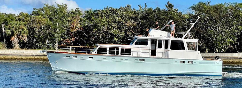 BREAKAWAY has benefited from knowledgeable owners who truly appreciated her wonderful attributes as a fine world class cruising motor yacht. Between 1996 and 1999, BREAKAWAY underwent an extensive restoration project at the legendary Huckins shipyard in Jacksonville Fl. During this time, she was repowered with 600 Hp CATS 3176B. Improvements on the lower helm and bridge deck were also a part of this restoration at Huckins. In 2001 she was sent to a Hinckley shipyard for a new galley. 2017 was a great year for a superb gleaming AwlGrip paint job. Between 2020 and today she has received both mechanical and cosmetic upgrades including new Awlgrip topsides (2022), underwater lights, new water tanks, new wiring, new Air Conditioning, new fore deck, etc. As a custom live aboard powerful cruising machine, BREAKAWAY has provided her current family incredible cruising and living aboard memories that will last for generations. Her easy access to the water and a large cockpit area allows her to participate in a variety of water sports. But the time has come for a change in lifestyle. BREAKAWAY never fails to raise heart rates and to cause downright awe and envy whenever she glides by. Perfectly at home on the hook in the islands or having the weekend BBQ at the sand bar, she is ready to go and provide another family with more adventure and stories to tell. Easy to preview in Fort Lauderdale the yachting capital of the world. Courtesy showings and video walk throughs are available.