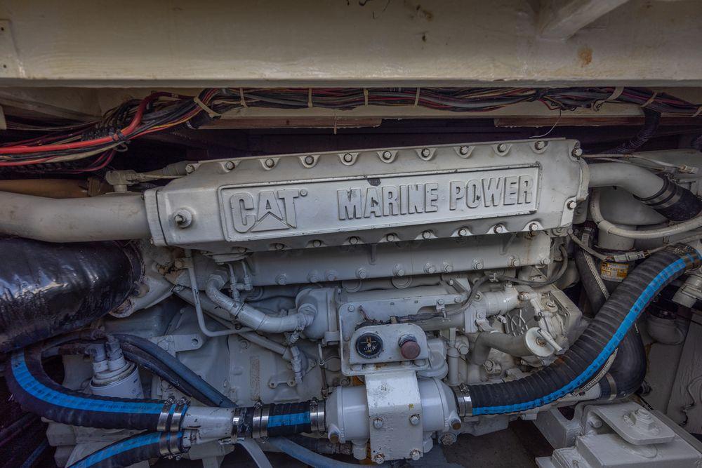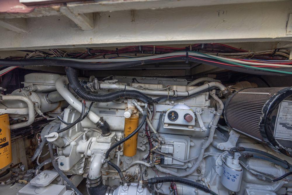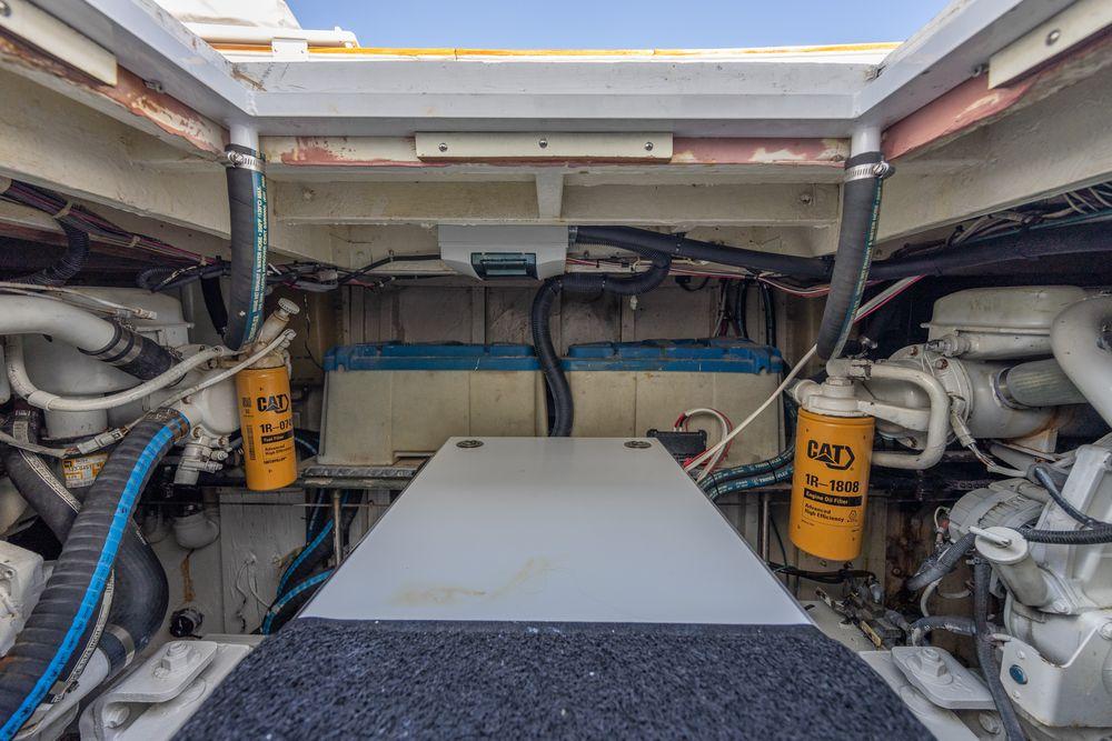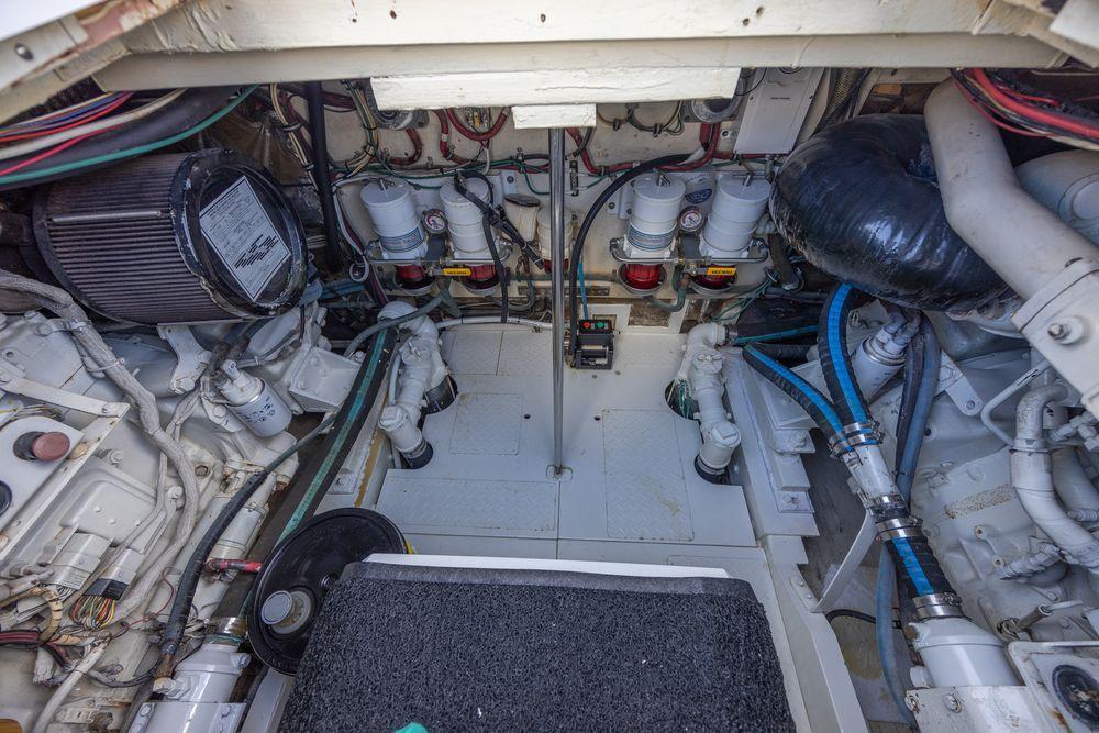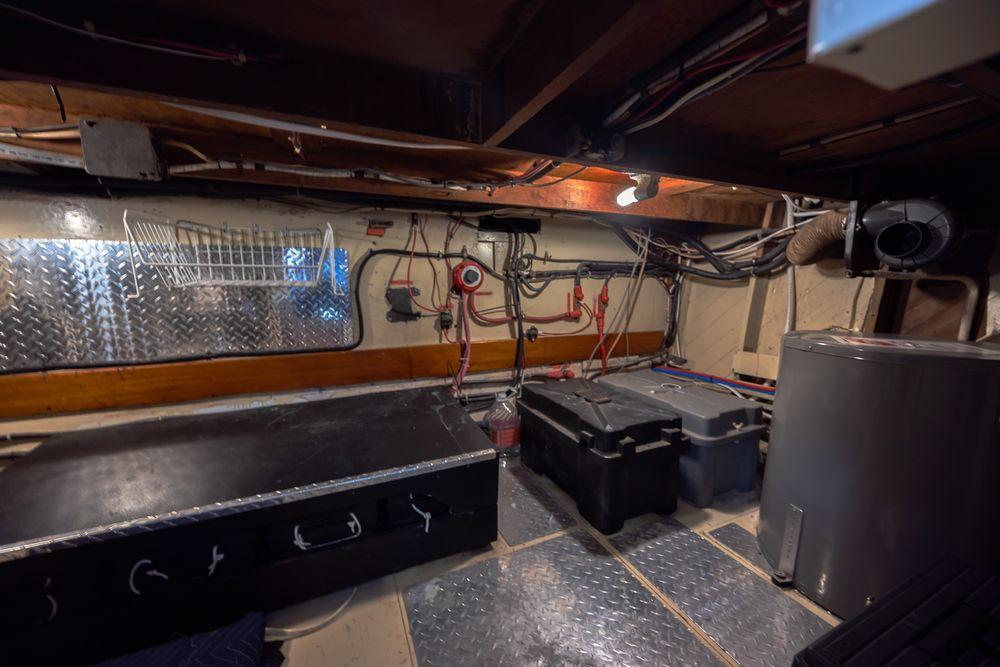 BREAKAWAY has a great engine room with separate pump room. Main engine room is located aft and is accessible via 3 large deck hatches in the cockpit The forward "pump" room is located under the main saloon with access from the galley. This area has AC compressors, house batteries, battery chargers, hot water heater etc. and is a great dry storage area as well,