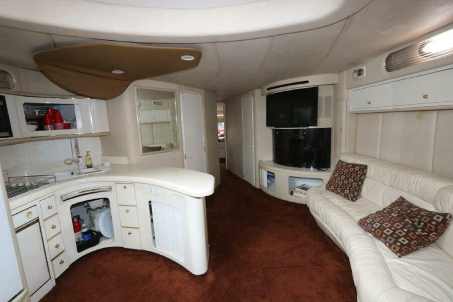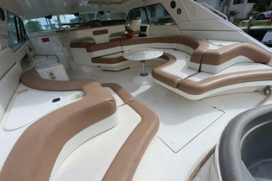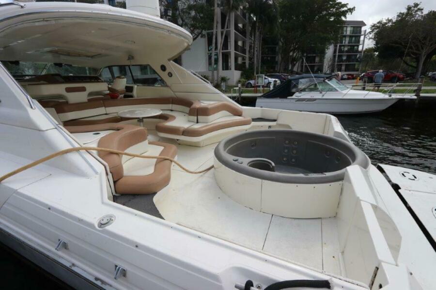 Manufacturer Provided DescriptionAt first glance, it might appear that the Sea Ray 630 Super Sun Sport was custom crafted with its unsurpassed styling, upgraded power plant, the very latest navigational technology, and incredibly durable construction. In fact, this kind of quality is part of Sea Ray''s meticulous production process, which means all the benefits of owning a custom yacht at significant savings. The cabin on the 630 Super Sun Sport is lavish in its appointments - deep-pile stain-resistant carpet and custom curtains throughout, concealed floor storage, and granite-look Corian countertops. Two elegant staterooms greet guests with first-rate sleeping quarters, including private head and shower areas with cultured marble floors, as well as TV - VCR combinations. The master stateroom also features a sound system with three Bose Acoustimass speakers with remote control. Even the crew quarters offer accommodations complete with air conditioning, twin berths, private head and shower, Beam vacuum system, and a Clarion AM-FM compact disc player with two speakers. The highlight of the salon is an enormous leather sofa that''s not only great for lounging, it also has an electrically operated slide-out bed for extra sleeping space. Guests can enjoy the entertainment center with TV, VCR and Bose Lifestyle 20 stereo system. When it''s mealtime, plenty of seating is available around the high-low dining table, as well as at the galley breakfast bar. If a more spacious arrangement is preferred, an optional dinette can be added in lieu of the guest stateroom. Of course, the galley has everything imaginable from a coffee maker and trash compactor to a Sub Zero refrigerator and freezer with icemaker. The entire cabin receives warm natural light through a well-proportioned skylight, and the whole environment is climate-controlled by a 40,000 BTU reverse cycle heating and air conditioning system. With its single-level design, the large 27-foot cockpit on the 630 Super Sun Sport is impeccably styled with a fiberglass sport spoiler that not only looks good but offers plenty of room for mounting electronics. There''s spacious circular seating with wrap-around aft-facing guest seats, a circular raised deluxe sunpad with headrest, and an entertainment center with a refrigerator, icemaker and Clarion AM-FM digital cassette stereo with six-disc CD changer, subwoofer, amplifier, four speakers, and remote control. The custom tri-section stainless steel tinted glass windshield has a power vent for improved ventilation and a complete canvas package that assures everyone''s comfort while underway. The helm features a custom slide - swivel seat with Euro-styled companion bench seat and an impressive wood-accent console that puts all the latest controls easily within reach - like Raytheon electronics, a comprehensive digital LCD systems monitor, and much more. Sea Ray also offers an accessory package that includes an oil changer system, cable TV inlet and c-phone intercom system with cell phone capability. A boat of this magnitude demands an engine system worthy of the challenges presented by big water cruising. Sea Ray answers with twin 1212 horsepower CAT3412TA Caterpillars with Power Pac exhaust lift system mufflers. A generous list of standard equipment further enhances the 630 Super Sun Sport''s performance: hydraulic power steering, engine synchronizer, 20.0 kW Westerbeke diesel remote start generator, dripless shaft logs with spare shaft seal carrier kit and more.