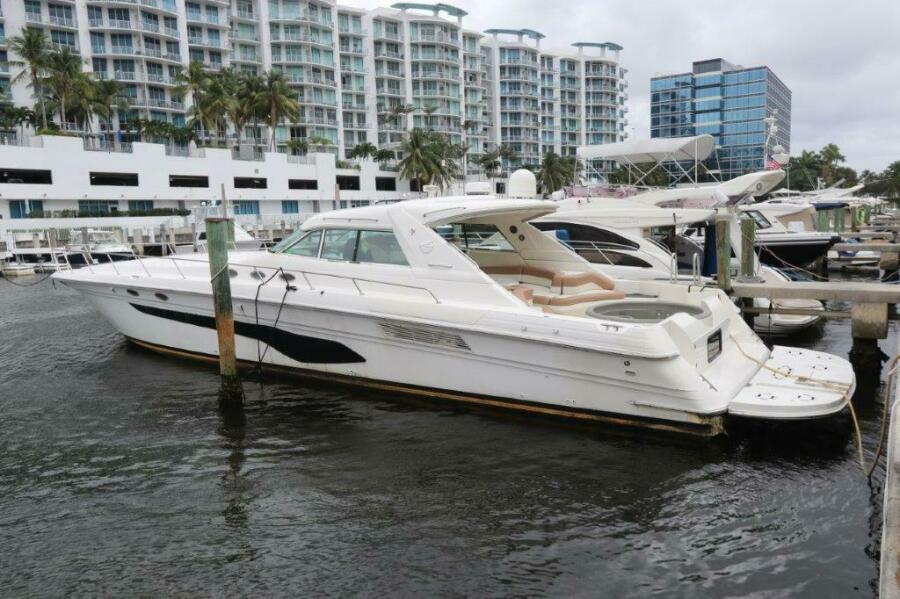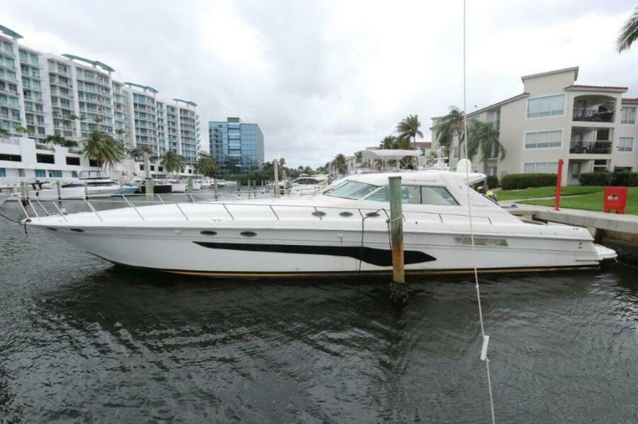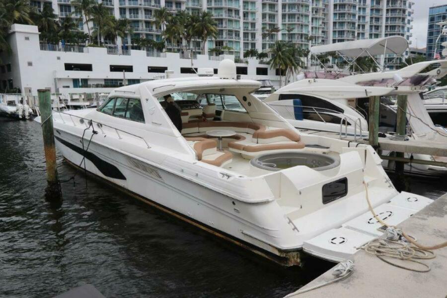 Sea Ray has arrived at our docks from Miami last week. Boat needs a fair amount of detailing and fixing. Engines are running as she came up on her own power, engines do need servicing. Although she does need work it will be sold at a good price. Call with any questions or to view.