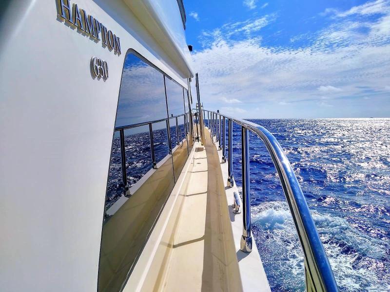 This low hours Hampton is in great condition. With the C-15 CAT engines (less than 1500 hrs.) and 1500 gallons of fuel she has a long range. Set up to be self-sufficient Bad Kitty II has been fitted for living off grid on anchor and includes watermaker, solar panels, and Bluetooth battery monitor.