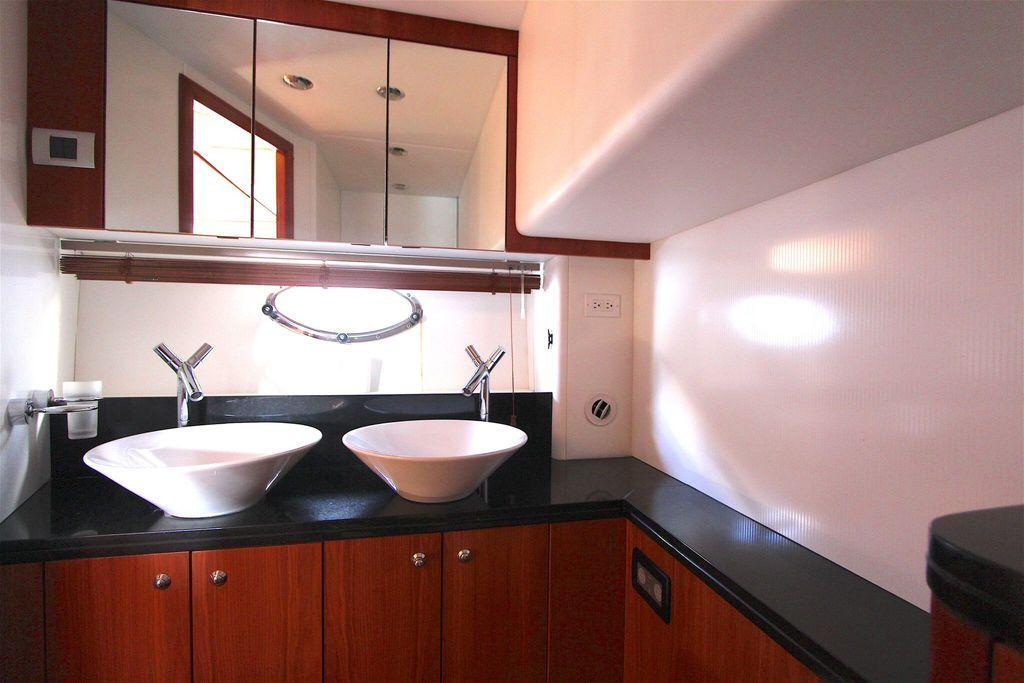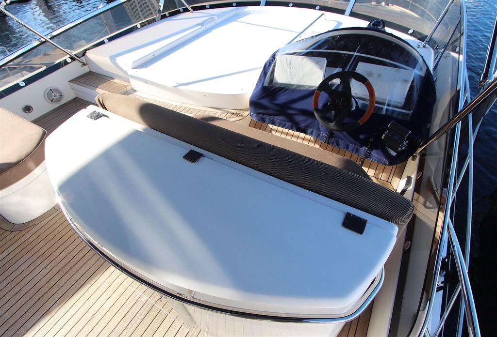 This innovative model is designed to maximize entertainment options with exceptional panoramic hull and saloon windows. Throughout the main deck, there is a strong focus on creating generous, useable social spaces. The modern design allows it to handle the rough waters with ease. Her exterior lines flow effortlessly from the bridge bow seating and sunbathing areas to the expansive cockpit.
