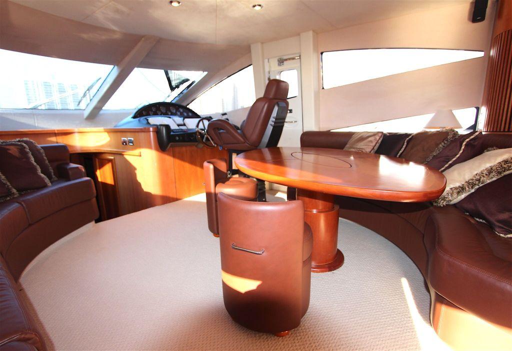 This innovative model is designed to maximize entertainment options with exceptional panoramic hull and saloon windows. Throughout the main deck, there is a strong focus on creating generous, useable social spaces. The modern design allows it to handle the rough waters with ease. Her exterior lines flow effortlessly from the bridge bow seating and sunbathing areas to the expansive cockpit.
