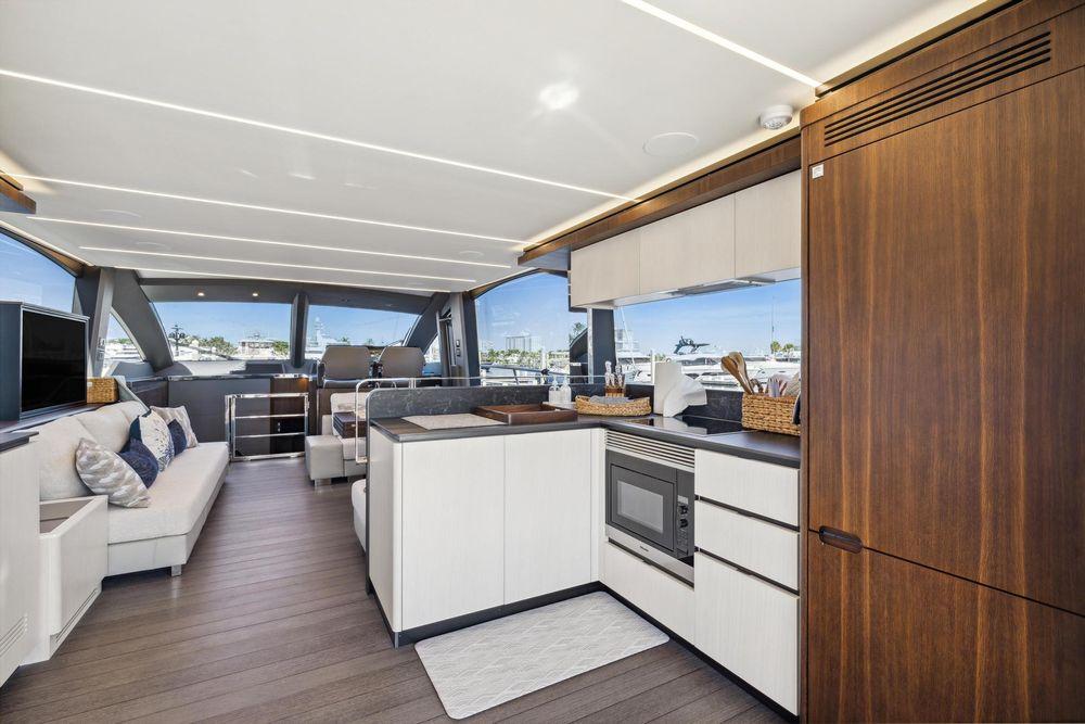 - Galley appliances (fridge/freezer, extra fridge port side, oven/microwave, ceramic stovetop)