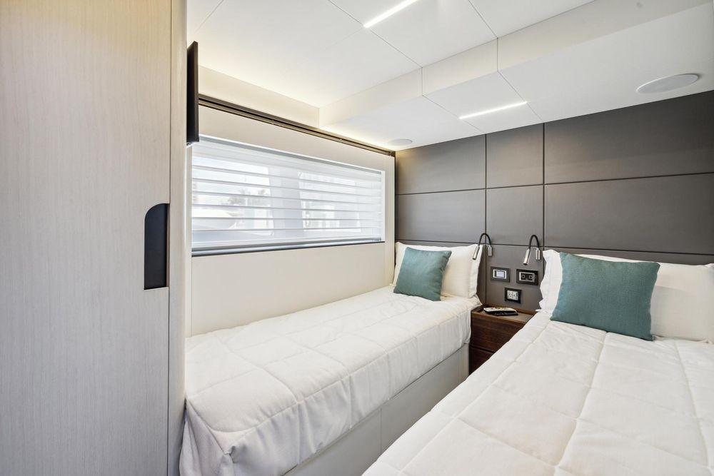 Passerelle, Aft control station, Water Maker, Starlink internet, KVH SAT TV, Separate Washer and Dryer, Extra Freezer (90L) and Refrigerator (130L)