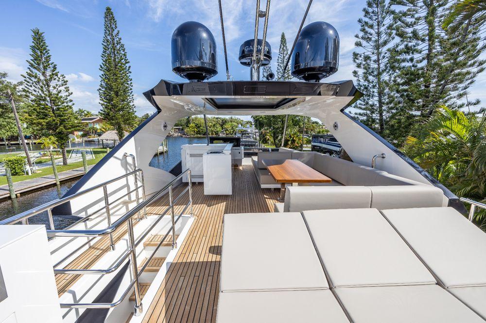 - Furniture on flybridge with barbecue, sink, water