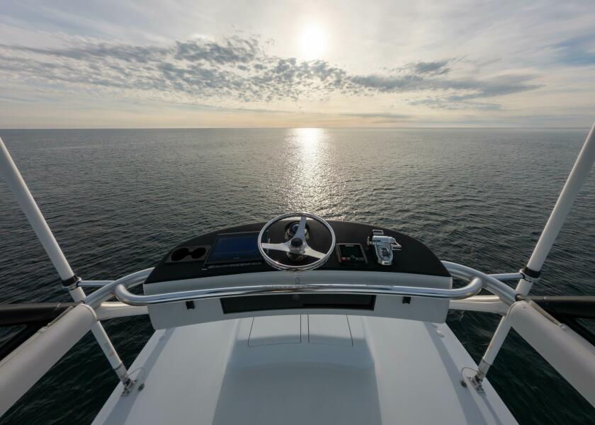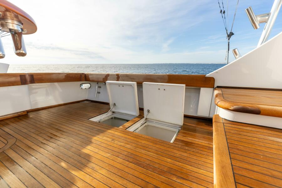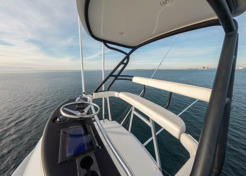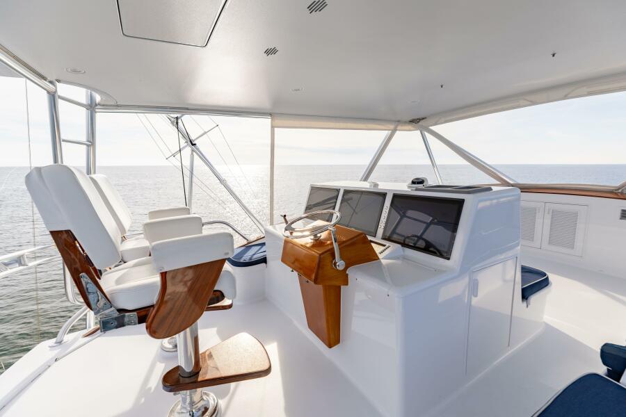 The Bridge layout is quite impressive, with its completely redesigned, updated custom helm area, with all new electronics as well. This area is fully air-conditioned and offers seating for 10 people. All new EZ2CY enclosure, Full PB Tower With Hardtop, new RUPP riggers, and Faux Teak by Monique.