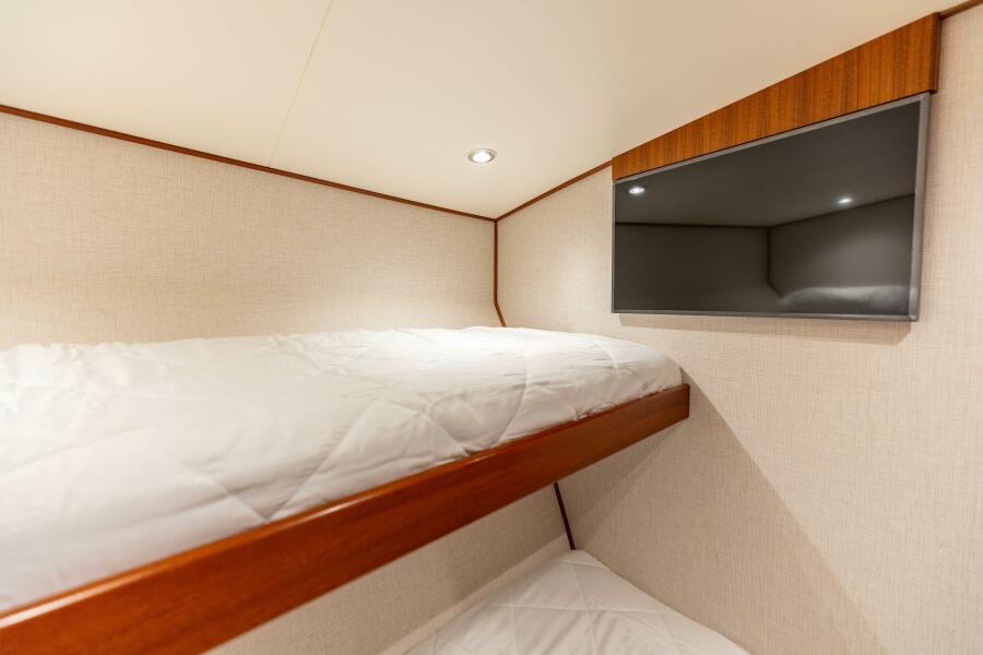 This Stateroom is a mirror image of the Aft Guest Stateroom. This head is a Jack & Jill style head, which shares the Aft and Forward Bunk rooms. This full head & shower area is quite large, offering a great shower and ample storage for guests.