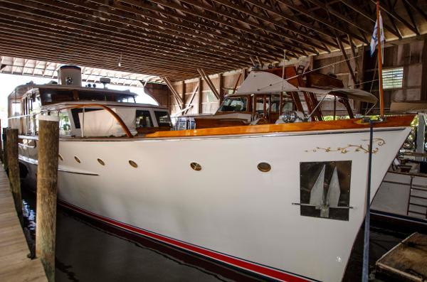 LIBERTY, until recently, has been kept in a boathouse in Stuart, FL. She is ready to cruise. Her sleek profile, crisp white hull and polished wood detailing exudes luxury, leisure and an aristocracy that is elusive in modern cookie cutter boats. Come step aboard and be prepared to be wowed.