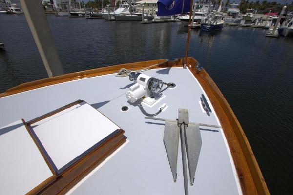 - Powerful Bendix electric bow thruster (42 Horsepower) with remote foot pedals in the pilothouse just below the helm.