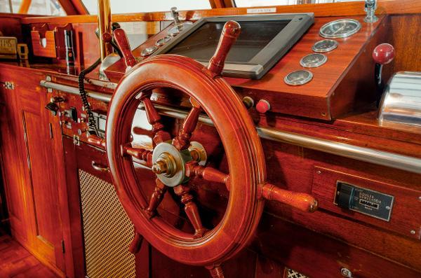 - Highly varnished caprails