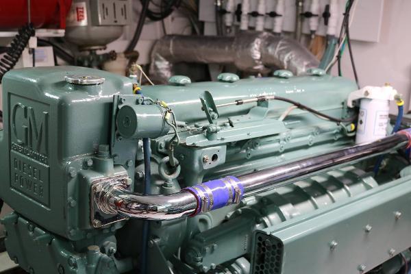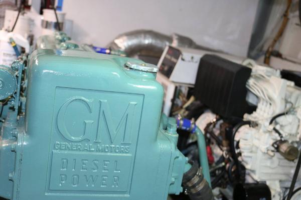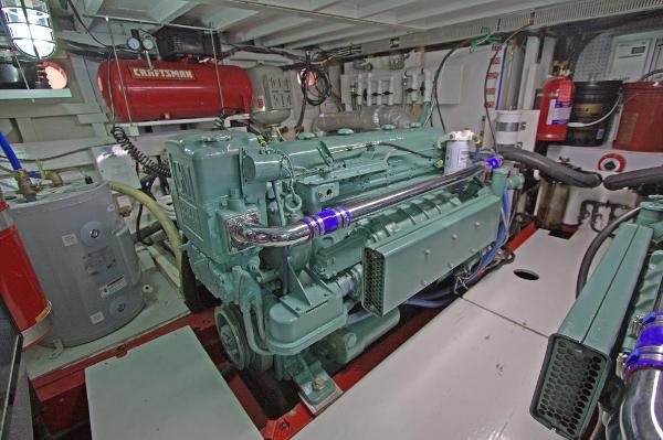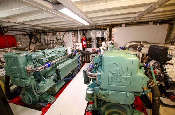 The biggest single project on the inside of LIBERTY was the removal from the yacht of her twin GM 6V71N engines. They left the yacht in 2016 and were taken to East Coast Diesel. At the time of this writing, she has approximately 500 hours on fully rebuilt and refurbished engines. The entire engine room was gutted, steam cleaned and refurbished including all NEW fuel tanks, water tanks and holding tanks. She has been meticulously maintained since the reinsertion of the now new GM 6V71 Naturals. These engines are indeed bullet proof and they are very reliable and economical: 5 – 7 gph at 9.6 knots at 1300 rpm. The naturally aspirated engines have a substantially longer life than more modern engines equipped with turbos and a zillion computer chips. Most problems that might pop up can be easily addressed without a computer and 5 technicians.