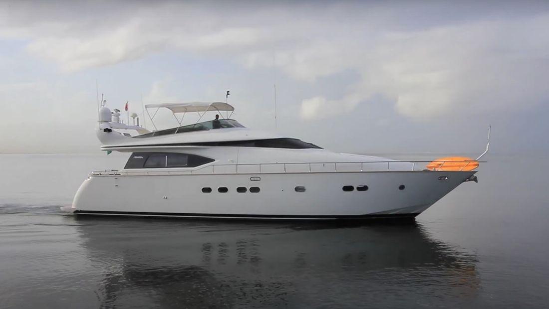 The vessel is laid out over two main decks with the addition of a large overhanging flybridge.