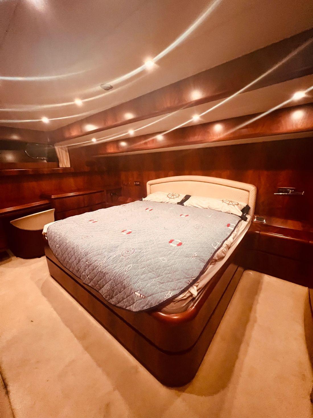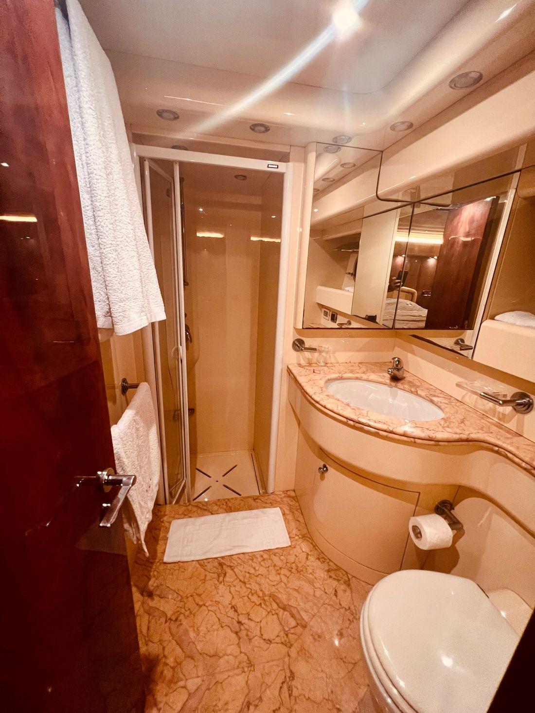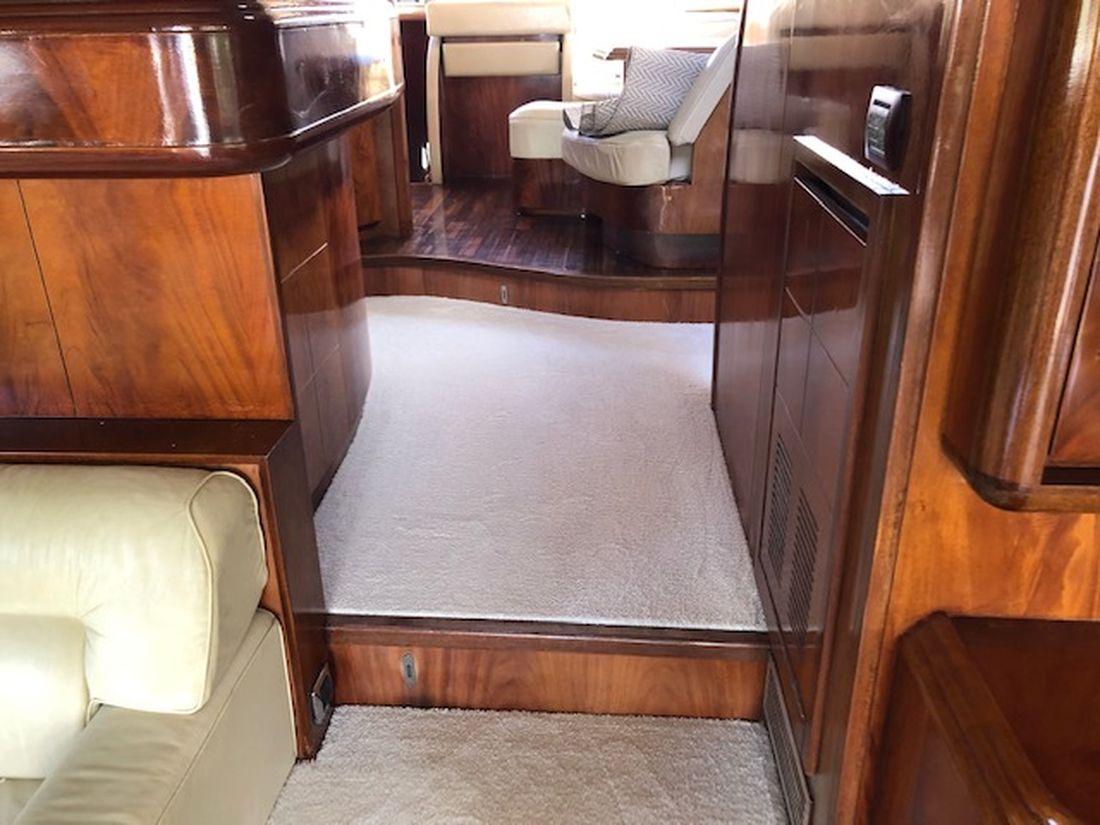 The main deck interior is made up of the saloon and galley with the main wheelhouse located forward, a covered aft deck with hydraulic bathing platform and large foredeck for sunbathing and mooring.