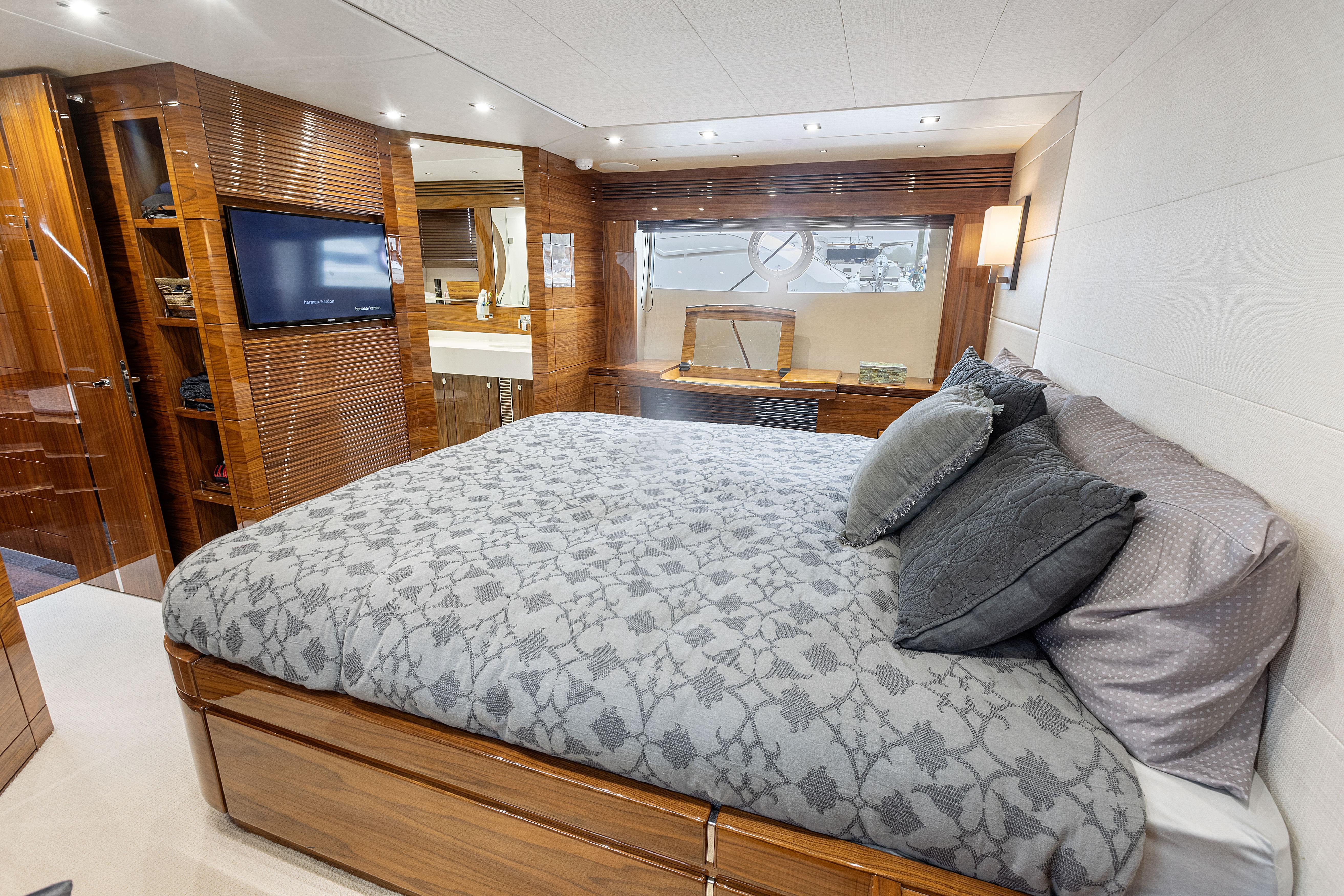 Exquisite interior and captivating design are prominent throughout the entire yacht - a classic example of Sunseeker design ingenuity. The extravagant sliding roof adds a sense of occasion to every journey – especially those undertaken at top speeds. Built to both thrill and inspire, you can’t help but fall for this symbol of success.