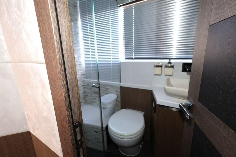 With the touch of a button the aft deck goes into “beach mode”. Sliding windows and aft doors bring the salon and the party outdoors. Scenic views abound through large sweeping windows throughout the salon, forward helm and gourmet galley. Luxurious accommodations await including two owner’s staterooms with plush centerline beds and en-suite heads. Choose your favorite, full beam centerline or forward centerline.