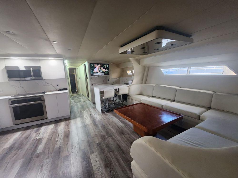 The stunning 1984 Infinity Sport Yacht creates a stunning silhouette on the horizon. The acceptance of its extremely large bow and