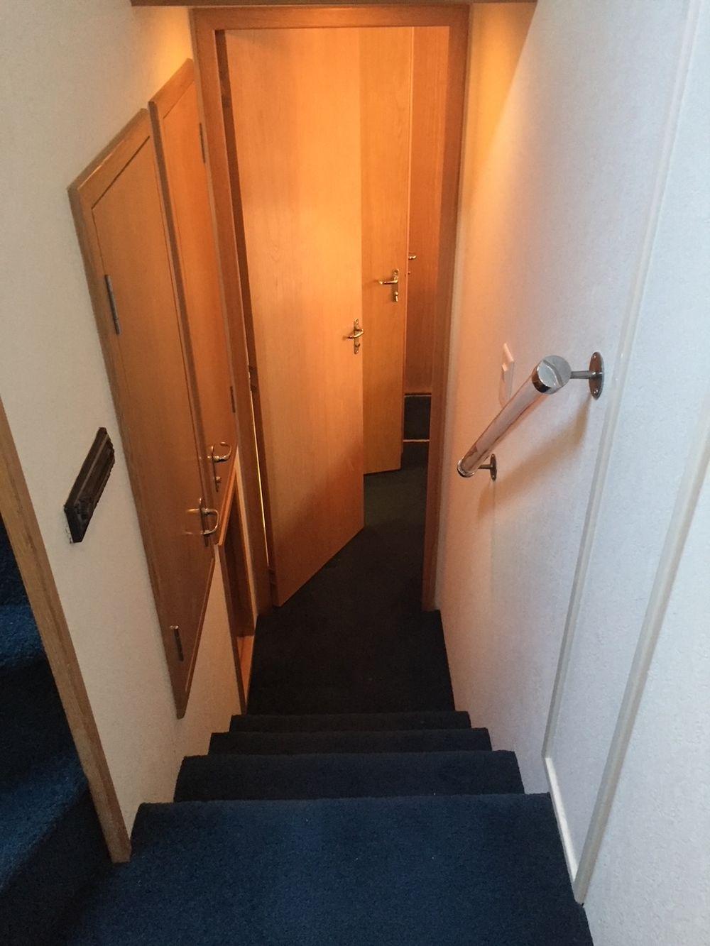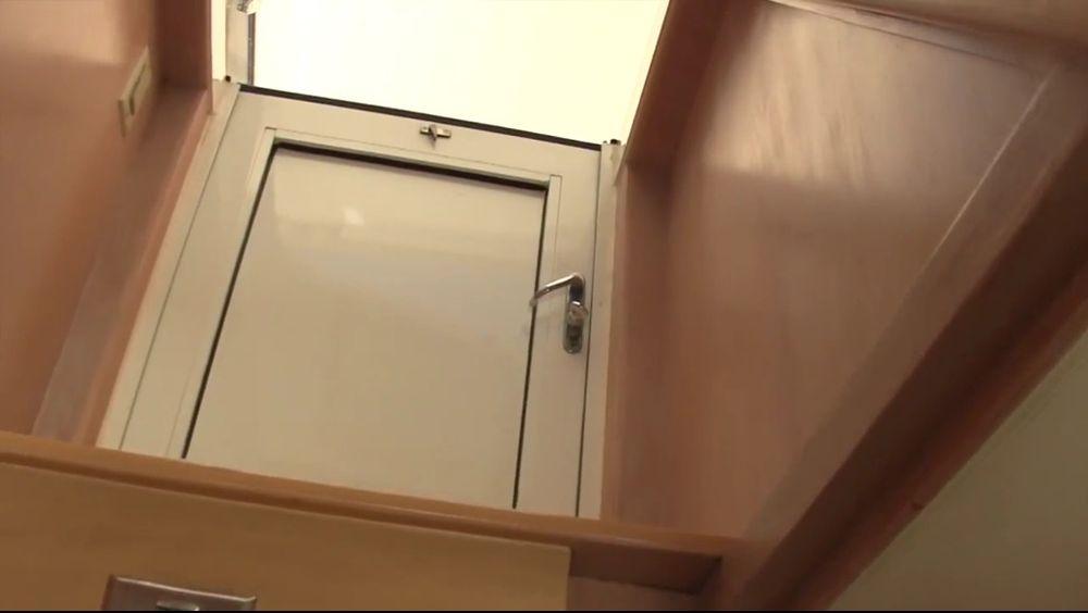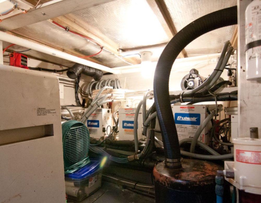 The generator room is located between the lower stateroom and is accessed via a hinged door in the floor of the hallway.