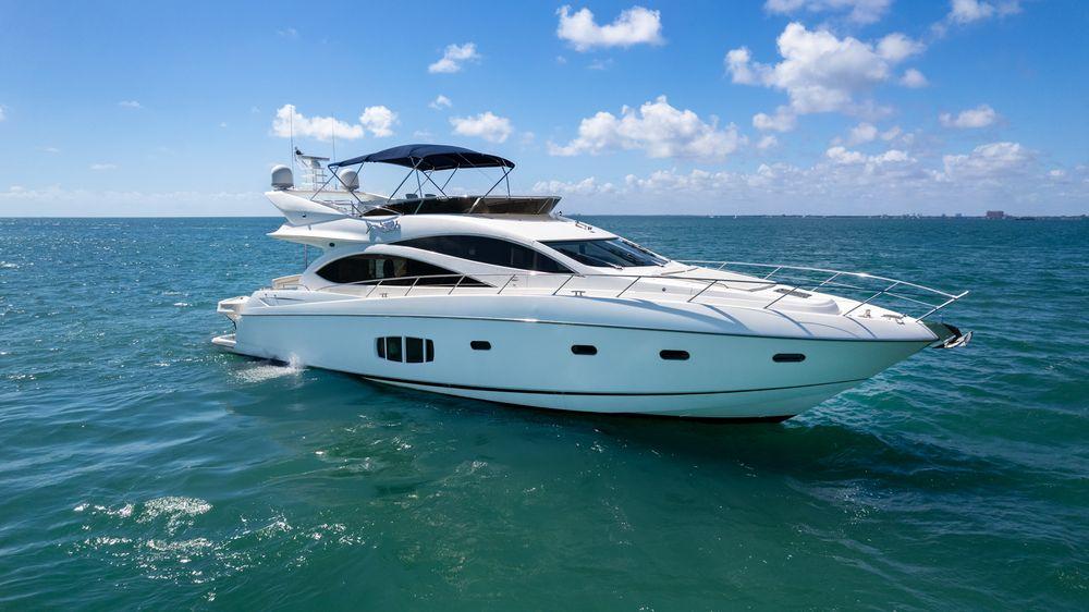 SIRENA is a 2008 SUNSEEKER MANHATTAN 70 designed and built by Sunseeker Yachts. Fast planing hull, modified-V, wide beam and straight sheer and spacious accommodations makes this vessel a comfortable and spacious weekender or extended cruiser. She boasts a spacious interior with four staterooms with ensuite head/shower, plus Crew quarters with head/shower at the transom.