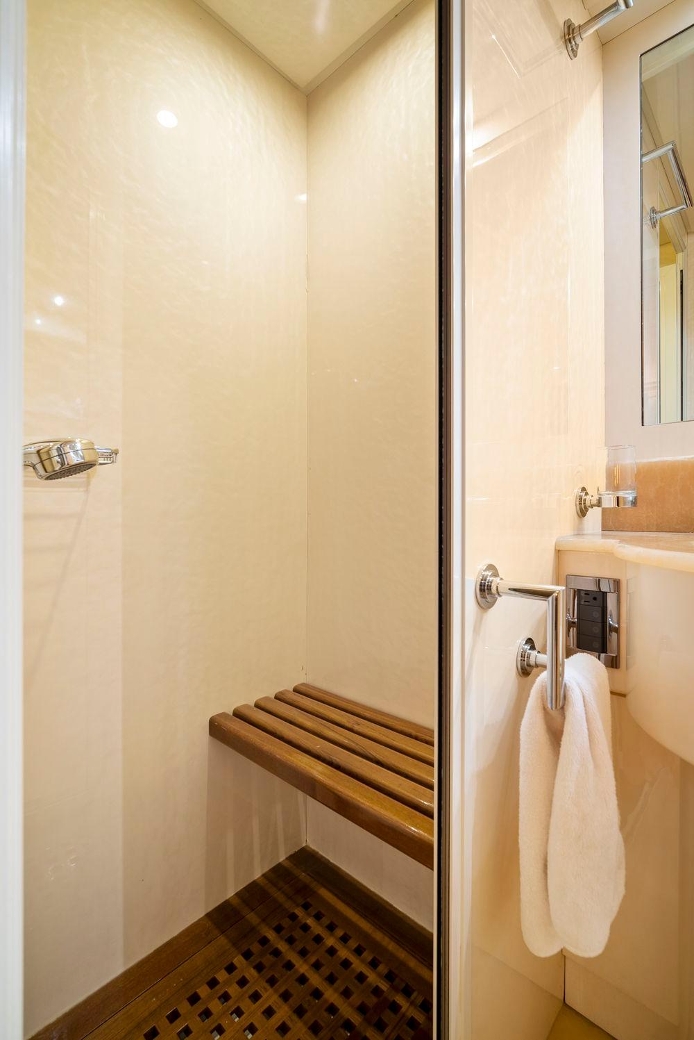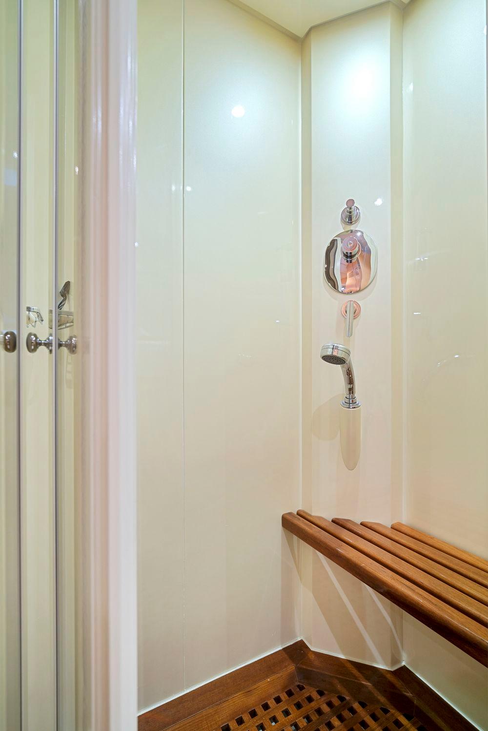 Each of the three staterooms all have an ensuite shower/head. The crew also has private entrance from the bow, with bunks for 2 and their own bath.
