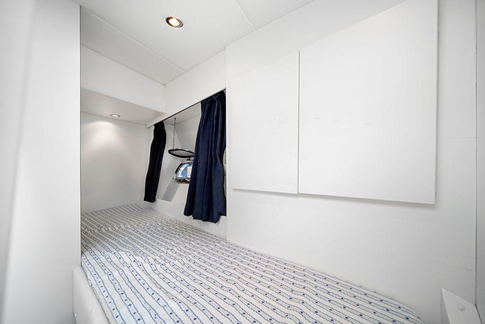 - Forward is a hatch leading into the separate crew quarters. In great conditions, this area provides two bunks, an ensuite head and shower, and self-contained air-conditioning. Included in the sale price of the yacht is dedicated bedding for the bunks as well as crew uniforms.