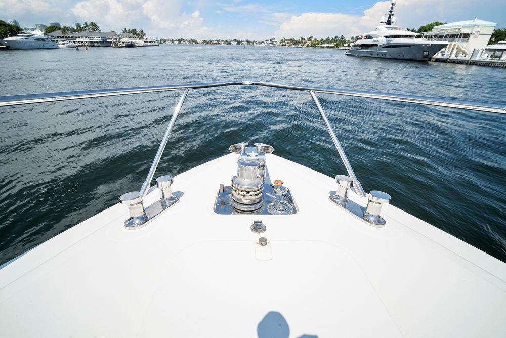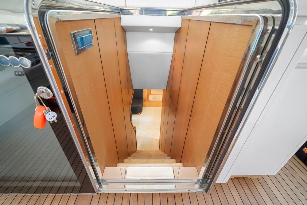 - Engine room access is on the starboard side of the aft sunpad, down several stairs. Recently during the 2023 refit, both of the engines were rebuilt to zero time. The exhaust was replaced with a new stainless steel system and wrapped in insulating blankets. A full inspection and servicing of all the wiring, plumbing, switches, head/shower systems, and appliances, were completed. Both generators are also currently up to date in services.