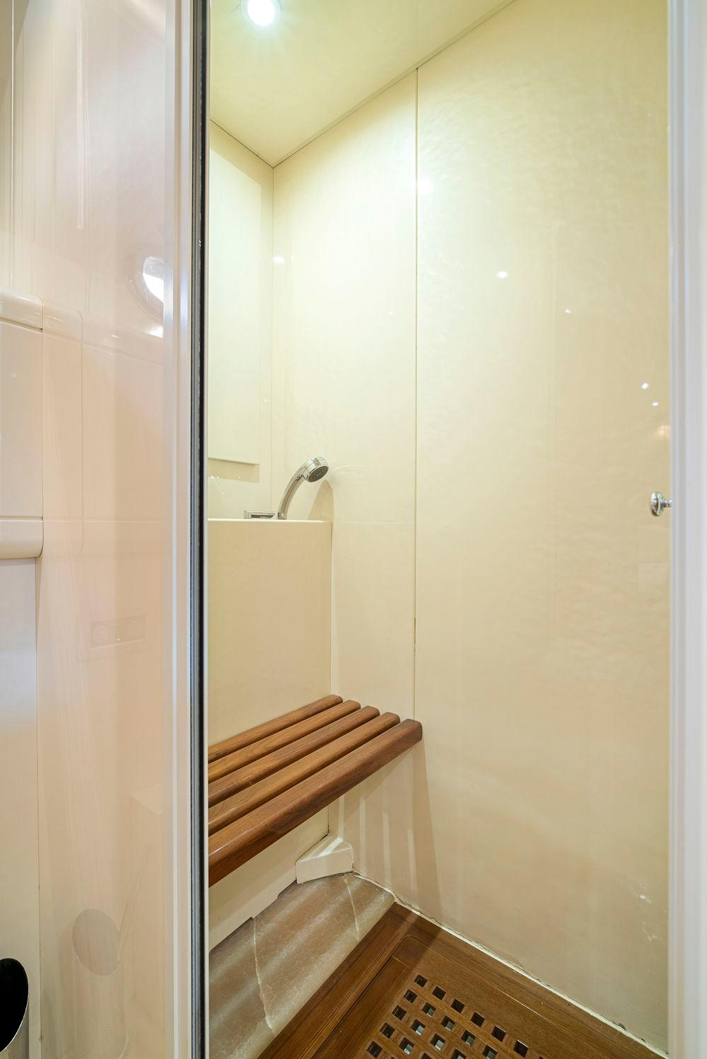 Each of the three staterooms all have an ensuite shower/head. The crew also has private entrance from the bow, with bunks for 2 and their own bath.